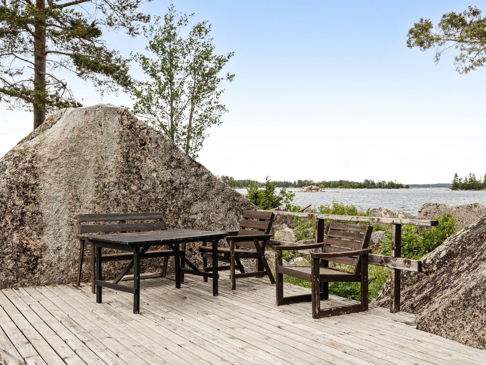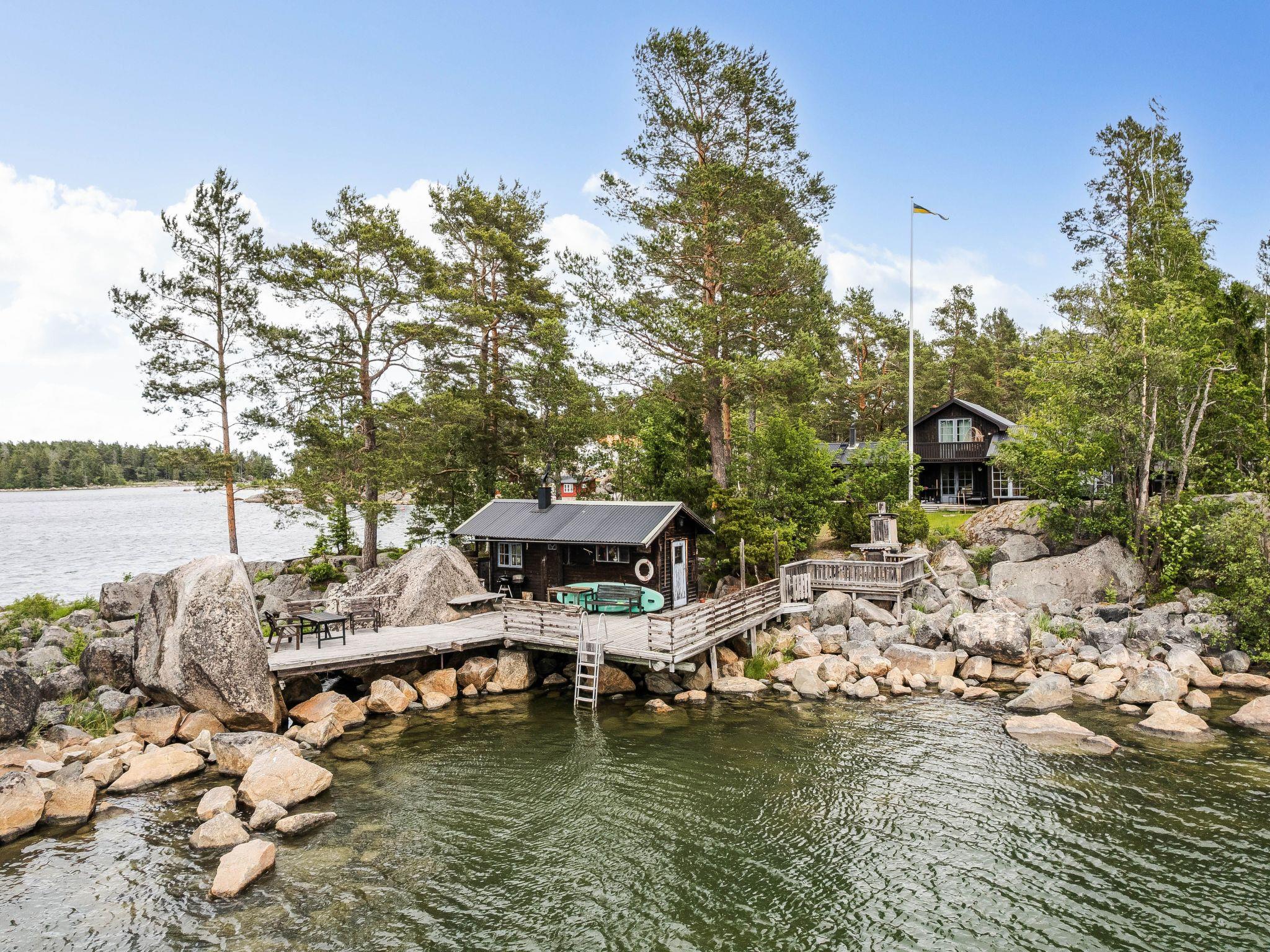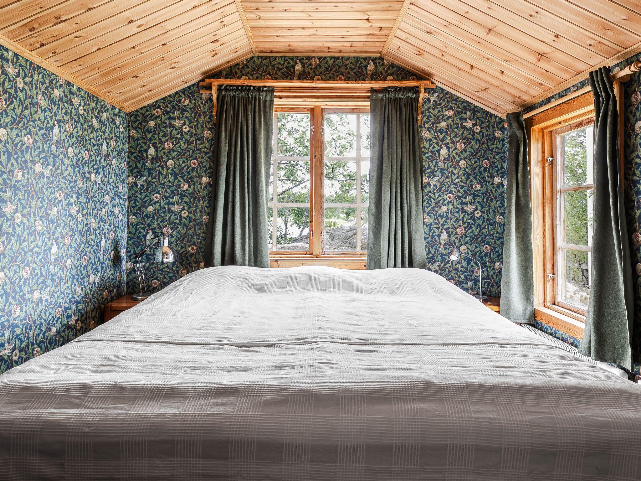 "Huset på Udden", 6-room house. Comfortable and tasteful furnishings: open large living/dining room with Scandinavian wood stove and dining table. 1 double bedroom with 1 double bed (180 cm, length 200 cm). 1 room with 1 x 1 bunk beds (90 cm, length 200 cm) (90 cm, length 200 cm), shower/WC. Open kitchen in the entrance (oven, dishwasher, 4 ceramic glass hob hotplates, toaster, kettle, microwave, freezer, grill, electric coffee machine). Shower/WC, Sauna. Heating. Upper floor: 1 children's room with 1 bed (90 cm, length 200 cm). 1 room with veranda with 1 bed (90 cm, length 200 cm). Wooden floors. Large terrace. Terrace furniture, barbecue (portable). Very beautiful panoramic view of the sea and the forest. Facilities: washing machine. Internet (WiFi). Please note: non-smoking house. Smoke alarm, fire extinguisher.