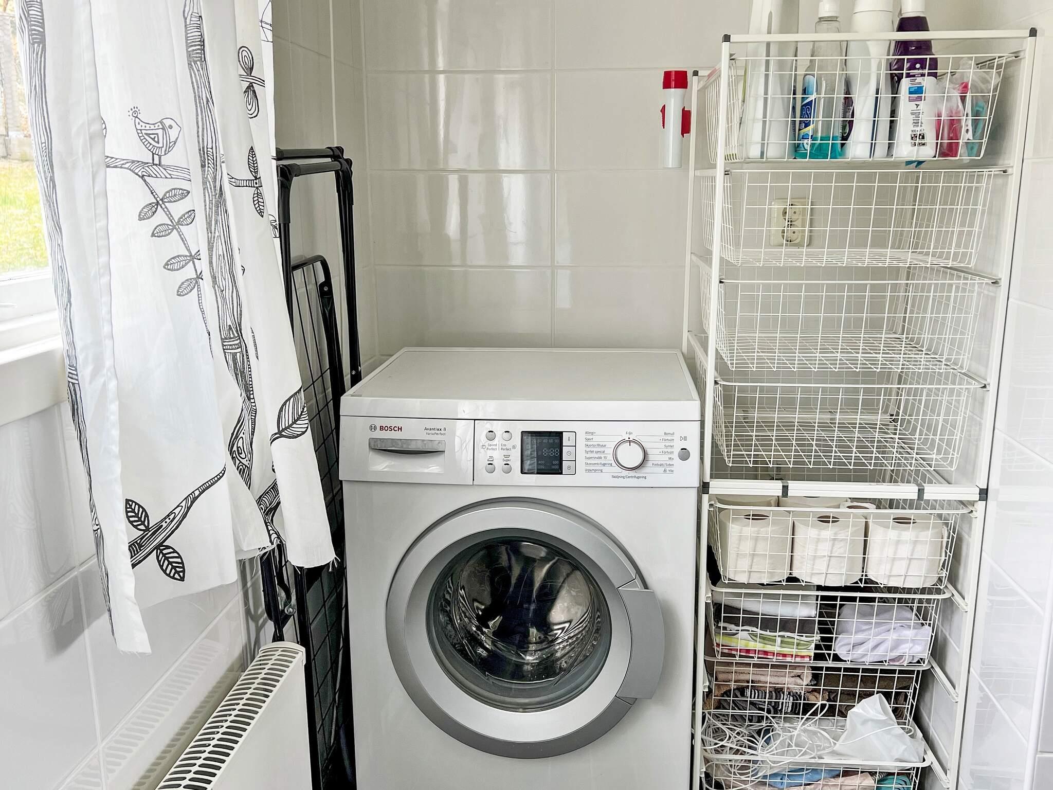 Bad/wc: Vaskemaskine, wc, håndvask, bruser