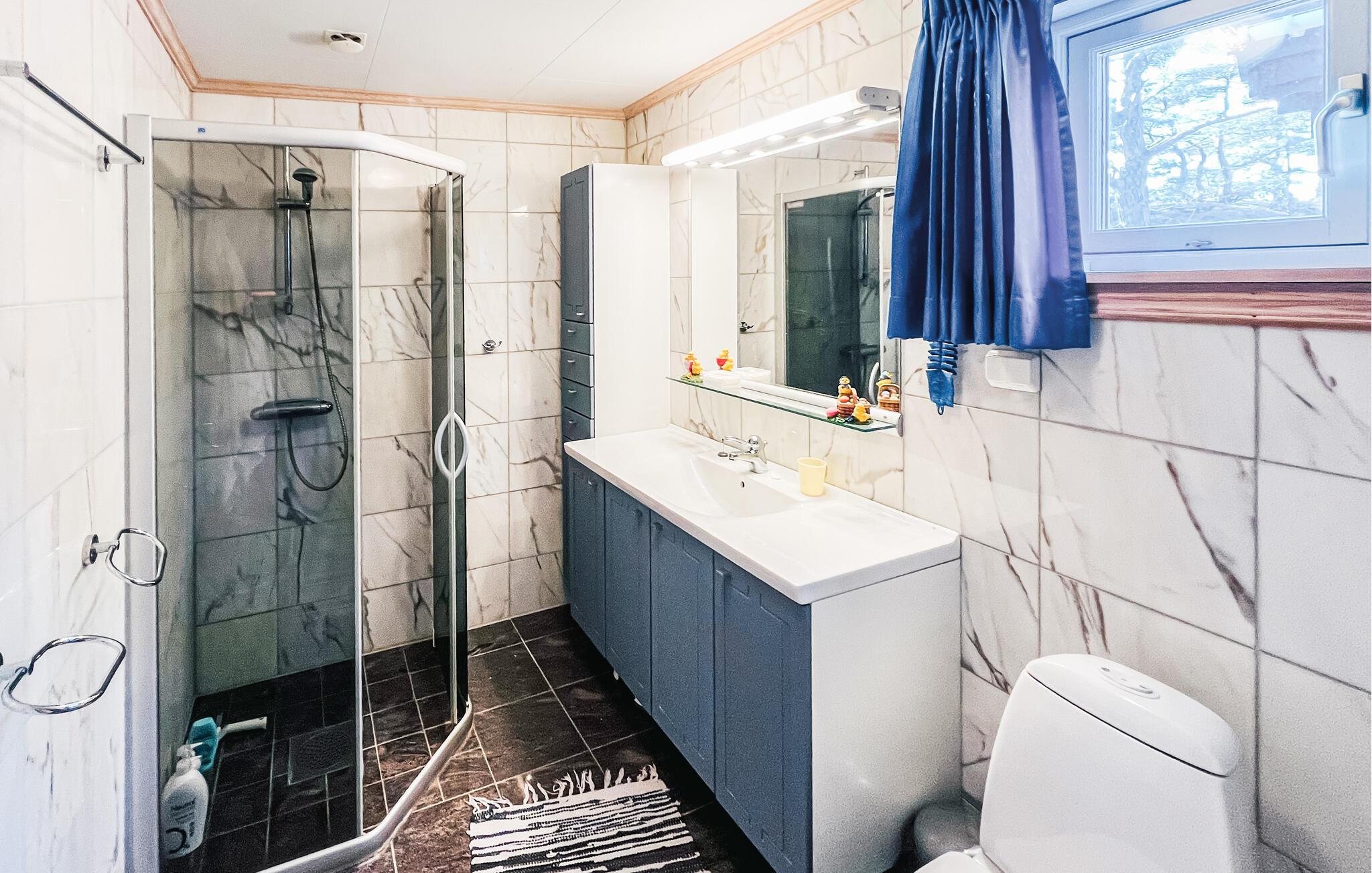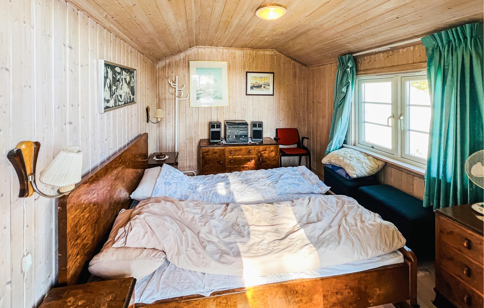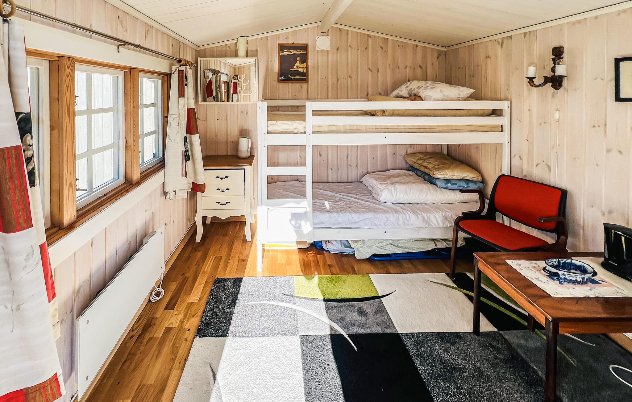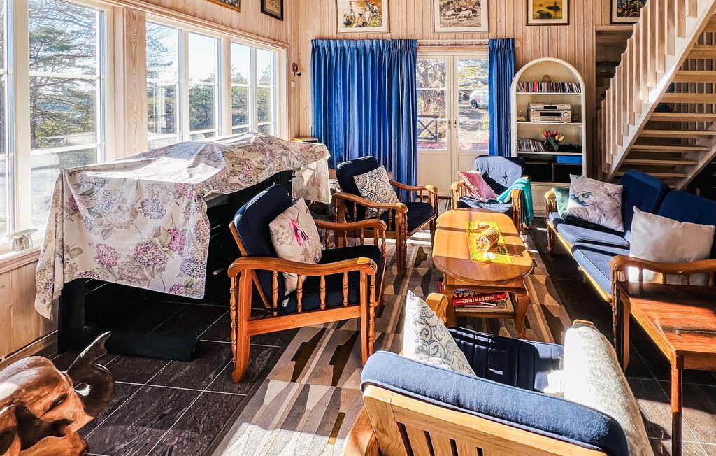 Oplev den svenske skærgård, når den er smukkest. Dette charmerende feriehus på en bjergskråning byder på en fantastisk udsigt over havet og de omkringliggende øer. Nyd absolut fred, frisk luft og vid udsigt i alle retninger. Den flot indrettede stue har en stor vinduesfront og flere komfortable sæder. Slap af her med en bog eller afslut aftenen sammen med samtaler og spil. Det store spisebord lægger op til at nyde lange, lækre måltider, mens brændeovnen sørger for hyggelig varme på kølige dage.