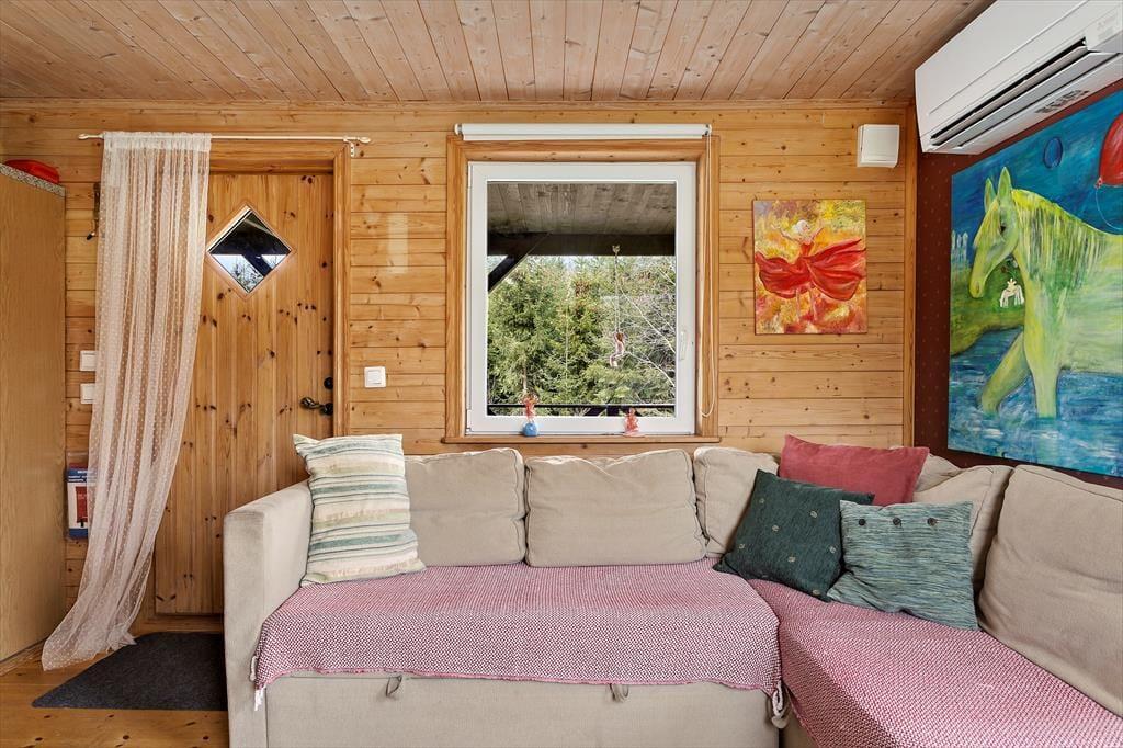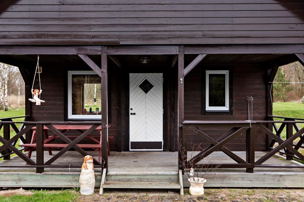 Sommerhus i Sölvesborg, Sydsverige, med plads til 4 voksne. Der er en hyggelig indretning med bl.a. brændeovn.