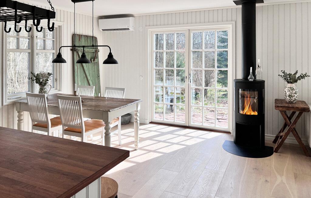 Tag familien under armen og flyt ind i dette klassiske, røde træhus, der ligger i absolut dejlige omgivelser tæt på vandet. Indvendigt emmer det af idyl med en åben planløsning, delvist fritlagte murværk og en brændeovn, der giver varme og atmosfære, når vejret viser lidt tænder. Det rustikke interiør suppleres i fremragende grad af de moderne faciliteter, der gør madlavningen til en leg, inden I runder aftenen af med et godt måltid mad og sofahyggen med brætspil eller en god film til sent.