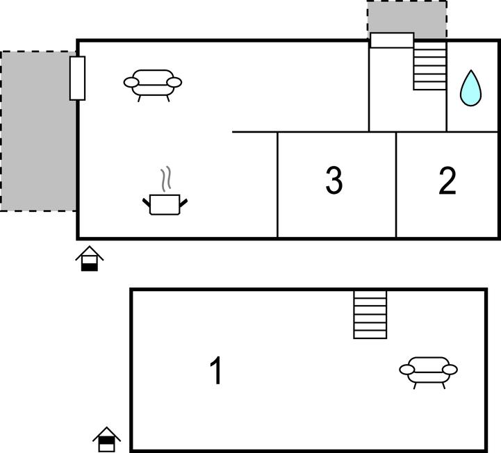 Soveværelse (nr. 2) - 2 Sovepladser. (Enkeltseng(e)).