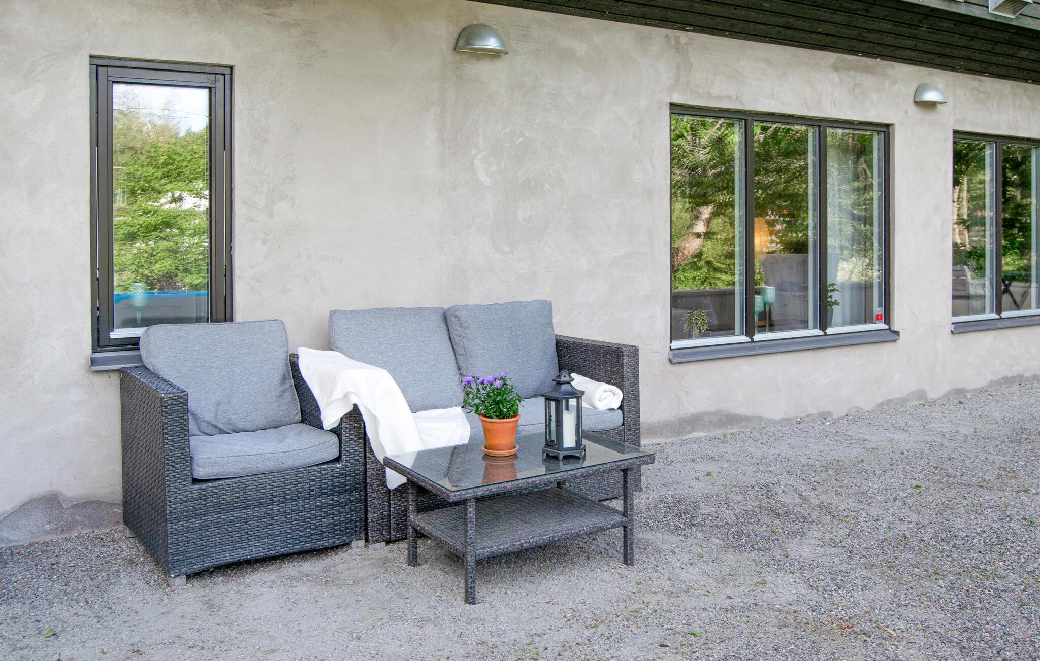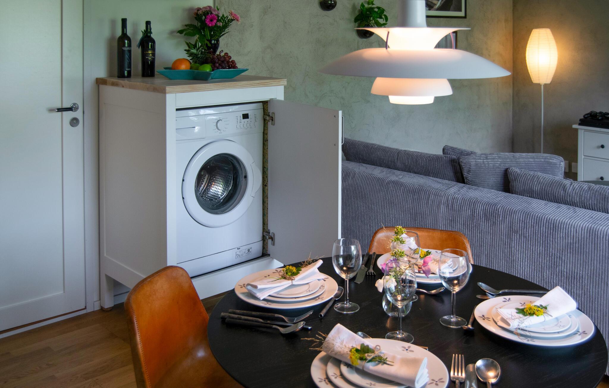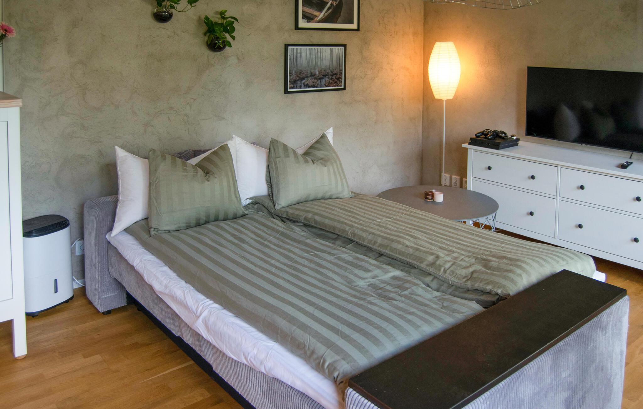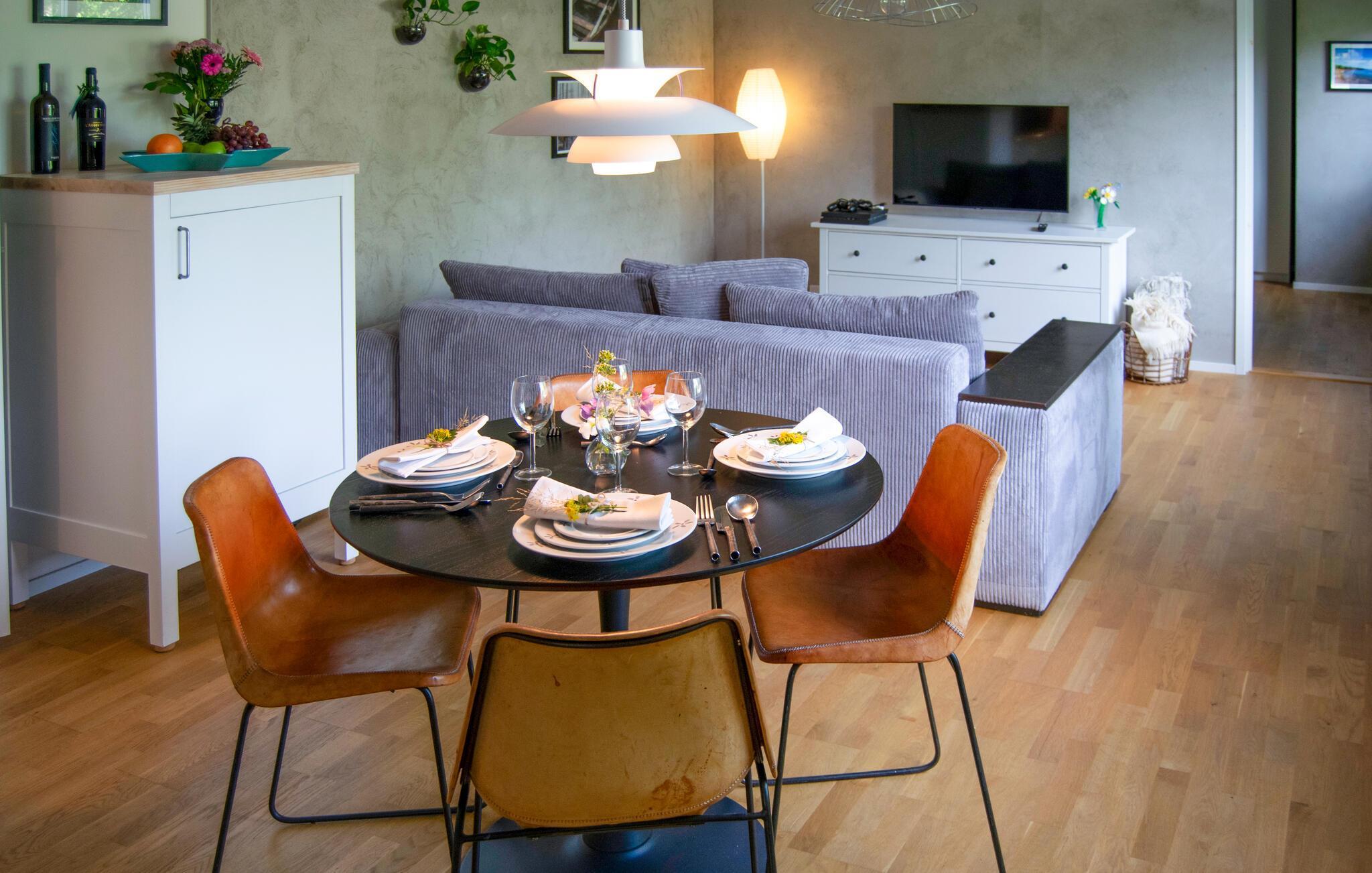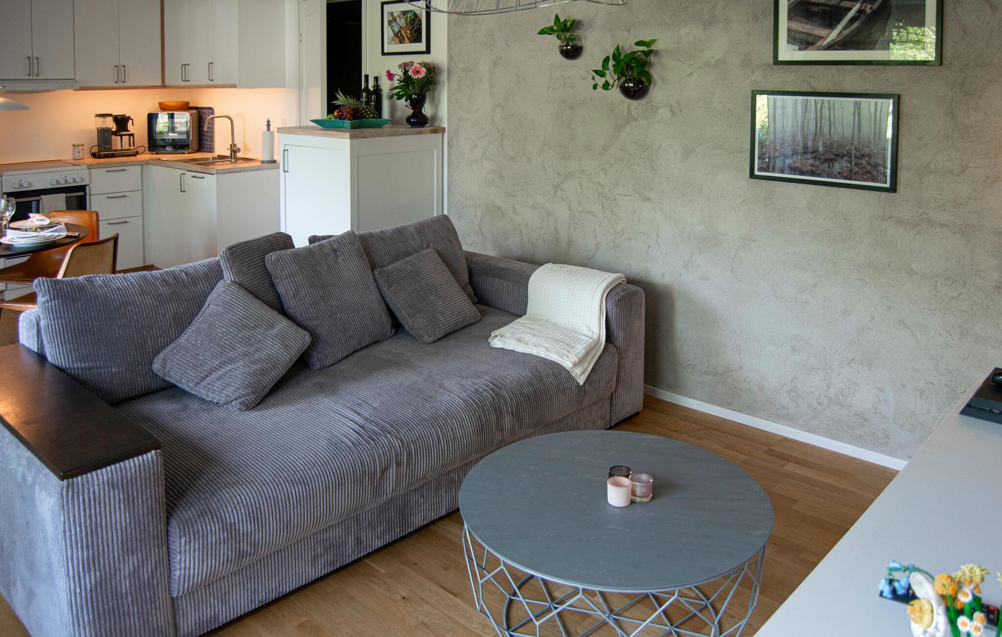 Denne hyggelige ferielejlighed tilbyder et hjem væk fra hjemmet for to, mens I udforsker den maleriske skærgård. Forkæl hinanden med lækre måltider og planlæg jeres aktiviteter i fred og ro ved spisebordet. Efter en lang dag kan I læne jer tilbage i sofaen med en bog eller et brætspil.