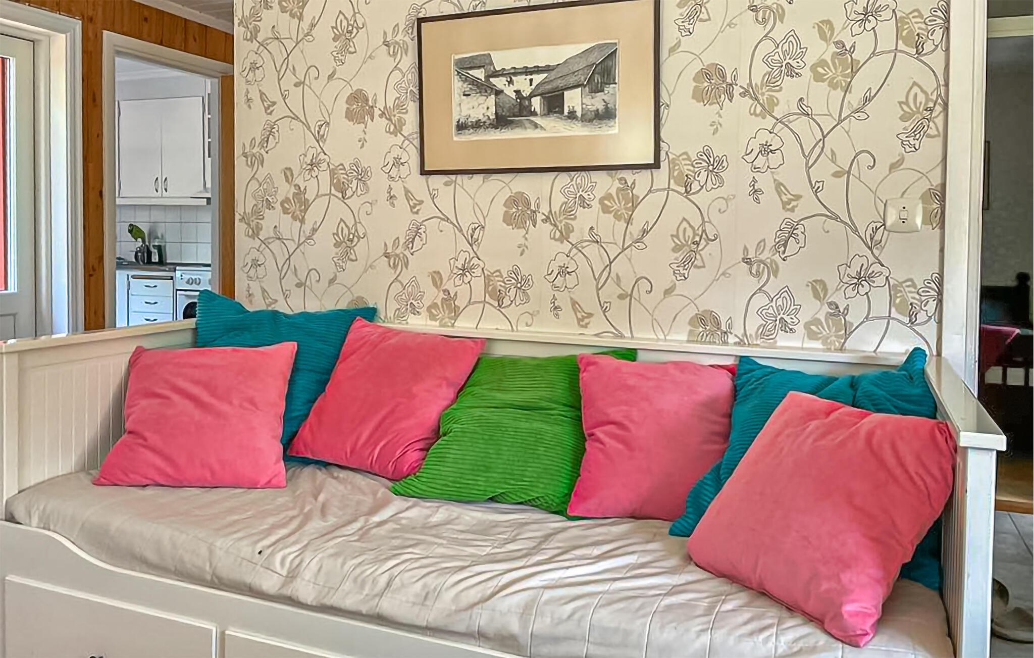 Dette lyse og hyggelige feriehus ligger på en mejerigård og tilbyder den ideelle base for dejlige udendørsaktiviteter. Her kan I trylle jeres lækre retter frem, nyde harmoniske måltider med udsigt over det omkringliggende landskab og lytte til knitren fra den norske brændeovn under hyggelige spilleaftener.
