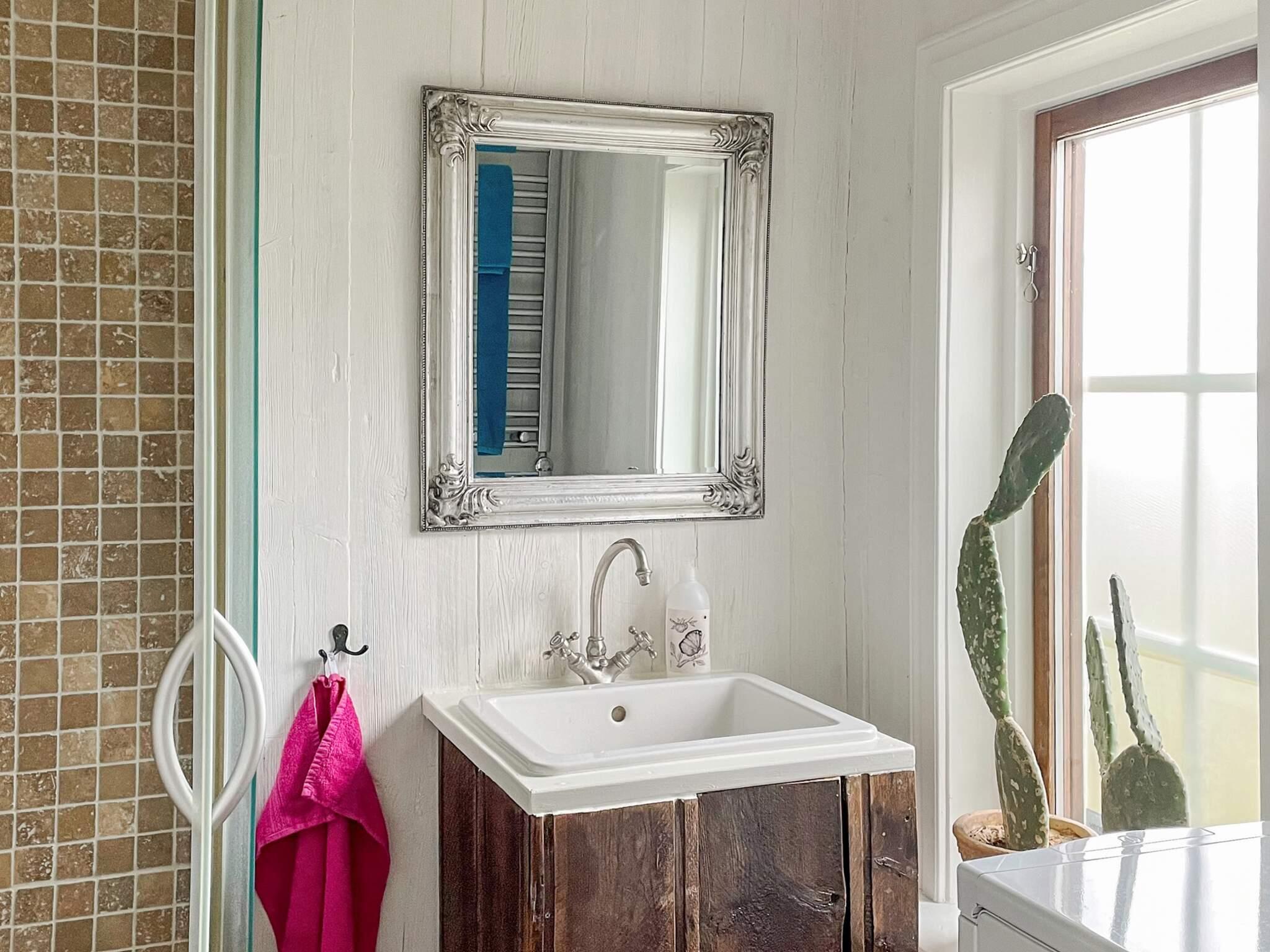 Bad/wc: Vaskemaskine, wc, håndvask, bruser