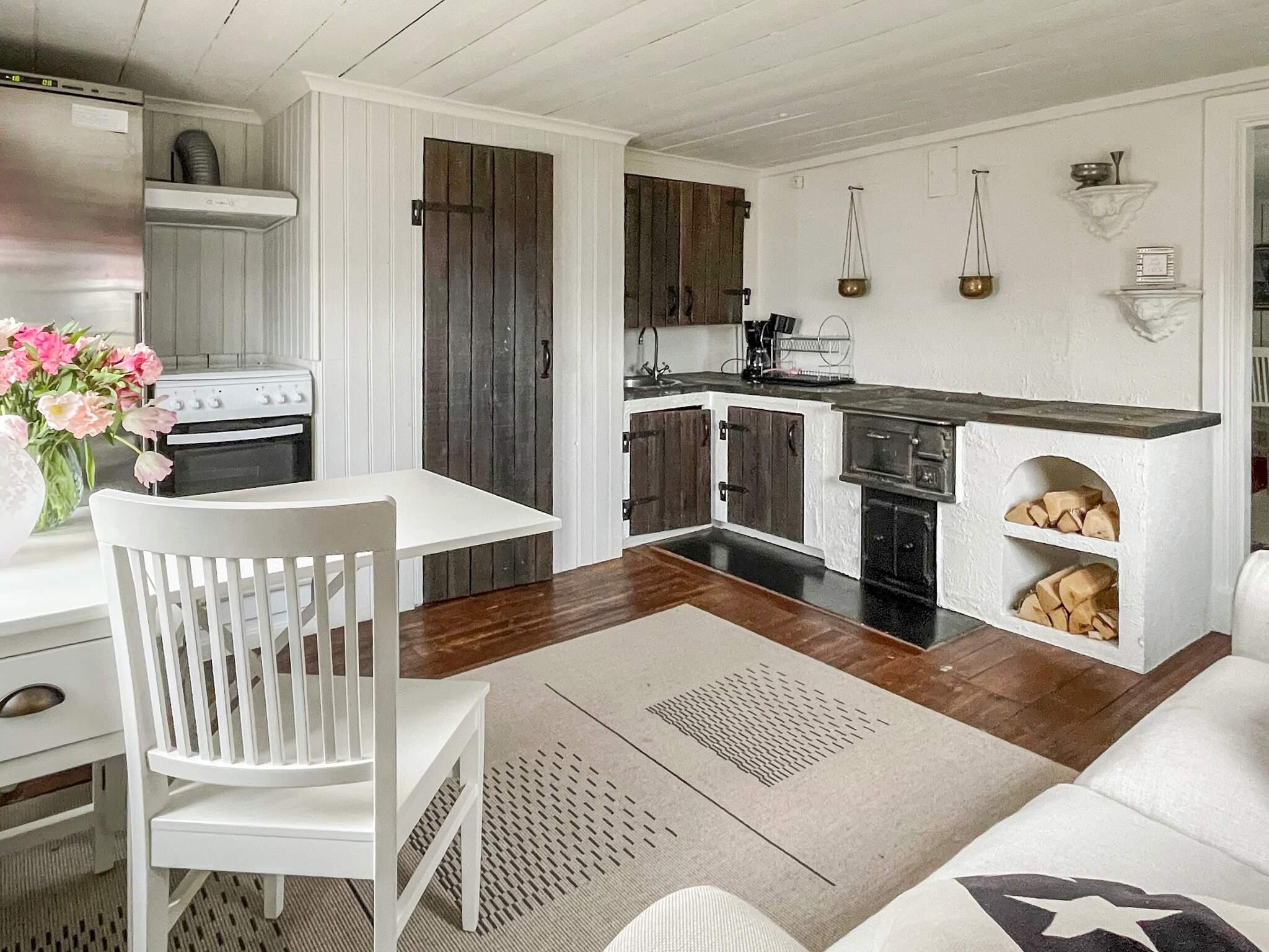 Här välkomnas ni av det trevliga värdparet som bor i huset intill. Vacker miljö med fina växtligheter och trädgård. Härlig altan där frukosten kan avnjutas i morgonsolen. I stugan finns ett stort kök med trevligt matbord, vedeldad spis och en bäddsoffa för två personer. Vidare in i vardagsrum finner ni tv med Apple-Tv och här finns även resterande bäddar i form av två enkelsängar samt en bäddsoffa om man hellre vill sova i den. Badrum med dusch, wc, handfat och tvättmaskin.