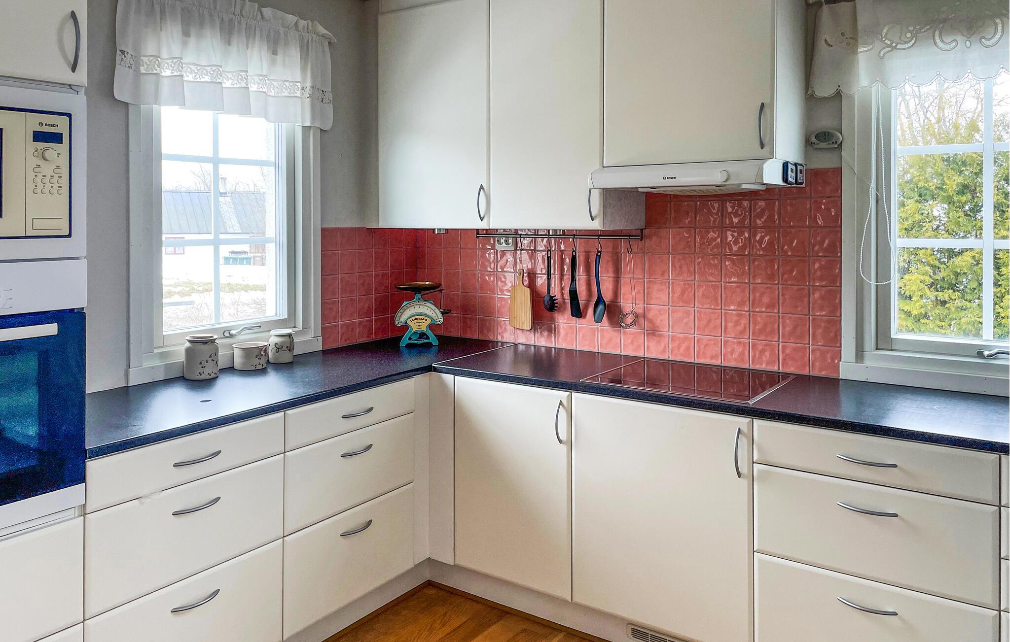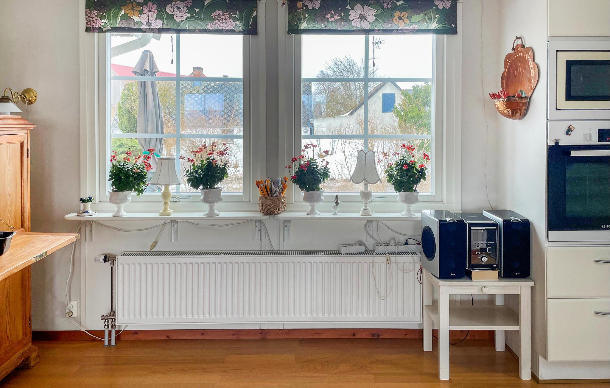 Dette hus kombinerer harmonisk hygge og komfort. Rustikke møbler, et komfortabelt siddeområde og blomstermønstre skaber en atmosfære, der er både forfriskende og afslappende. Nyd den storslåede udsigt over det omkringliggende landskab, slap af med en velduftende kop kaffe eller tilbring en hyggelig filmaften sammen.