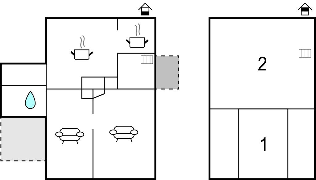 Køkkenet har en helt unik planløsning. I det dejlige badeværelse er der er et specielt rundt badekar. Soveafdelingen har kvalitetssenge og ligger på første sal, som I når via en gammel stejl trappe. De to stuer er i stueplan. Huset er ikke egnet til børn og gangbesværede på grund af den stejle trappe. Terrassen ligger på husets bagside uden adgang indefra. Dejlig lille overdækket siddeplads ved husets entredør.