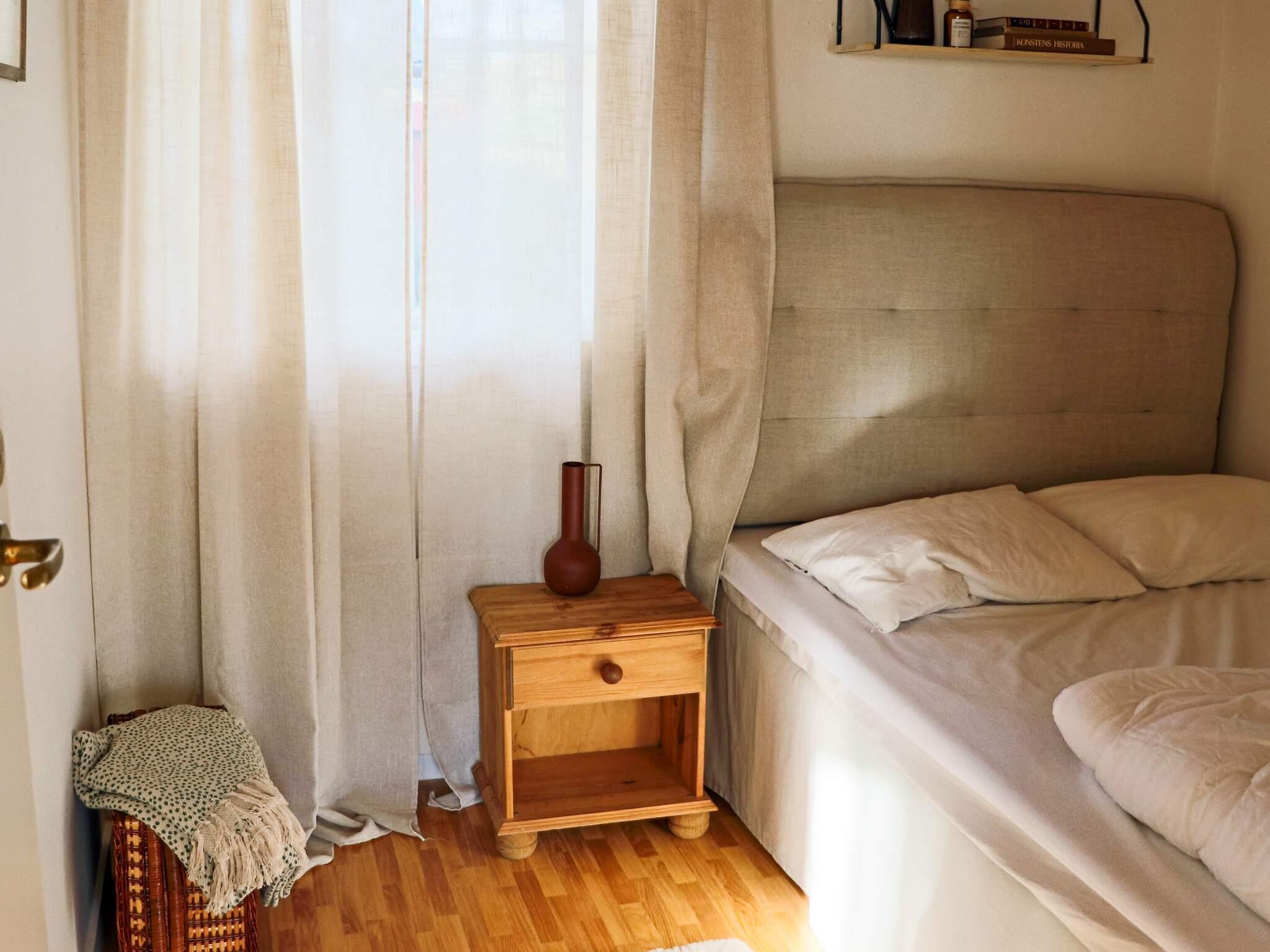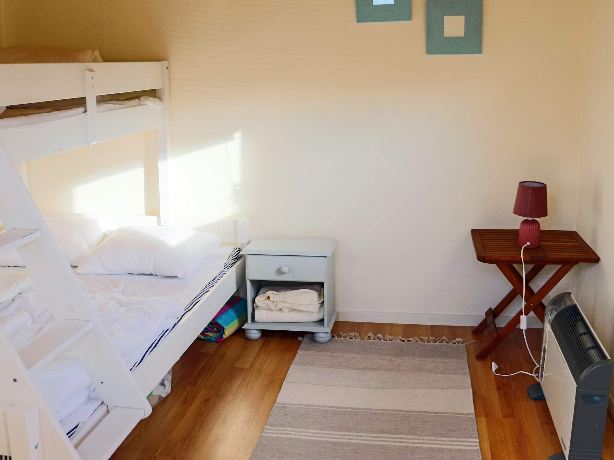 I huset finns det tre sovrum. Det ena med en klassisk dubbelsäng á 180 cm. Det andra med en våningssäng och det tredje sovrummet med en 120-säng.