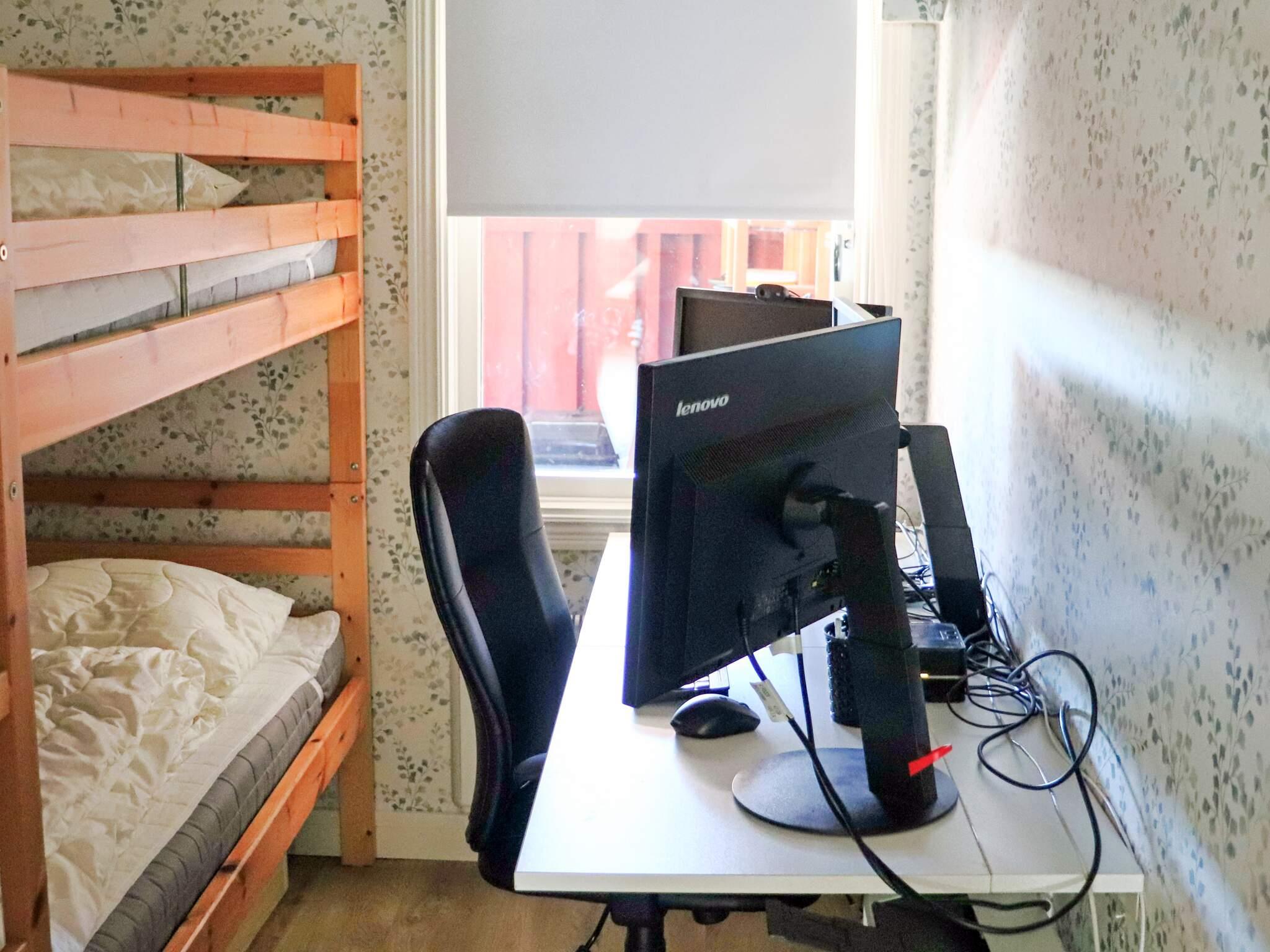 Köksdelen har det mesta man kan behöva med kyl och frys, spis med fyra plattor och ugn så ni kan laga god mat. Det finns även en diskmaskin. Vardagsrummet har en soffa och två fåtöljer och intill står den mysiga braskaminen som kan spraka gott om kyliga kvällar. I vardagsrummet finns en tv med baskanaler som utbud. Stugan erbjuder totalt 8 sängplatser vilket är perfekt för den större familjen eller två mindre sällskap. Det finns ett större sovrum med en dubbelsäng på 180 cm. Två mindre sovrum med varsin våningssäng 80 cm breda och i gäststugan/annexet finns ytterligare en dubbelsäng på 180 cm. Fördelen med detta hus är inte bara att det är havsnära utan också att det finns en tvättstuga för extra komfort. Reser du med mindre barn är detta mycket fördelaktigt. Badrummet har en dusch, wc och handfat. Allt i ljus stil och huset är hemtrevligt med god atmosfär. Till huset i sig finns även en carport.