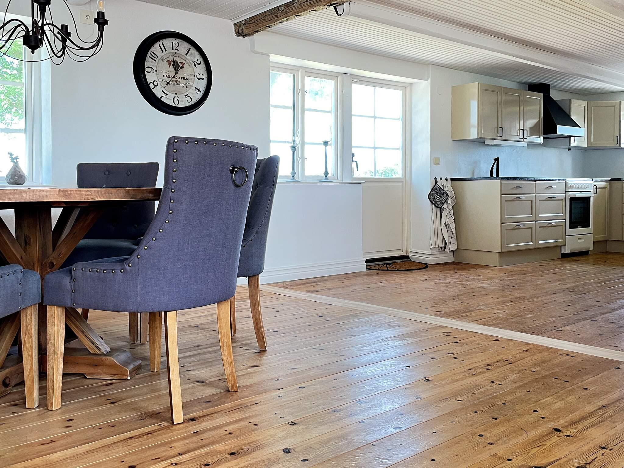 Huset har en öppen planlösning som skapar ett härligt flöde och en social atmosfär, perfekt för trevliga sammankomster och gemenskap. Det finns ett badrum med dusch samt en extra toalett, vilket underlättar för alla i sällskapet att slippa trängsel, både morgon och kväll. Från det fullt utrustade köket når du en fantastisk uteplats med en slående utsikt. Här kan du njuta av ditt morgonkaffe eller koppla av på kvällen medan du tar in den rofyllda omgivningen. Den här uteplatsen är en sann fristad för avkoppling och njutning. En stor trädgård gör det även optimalt för lek och övriga aktiviteter.