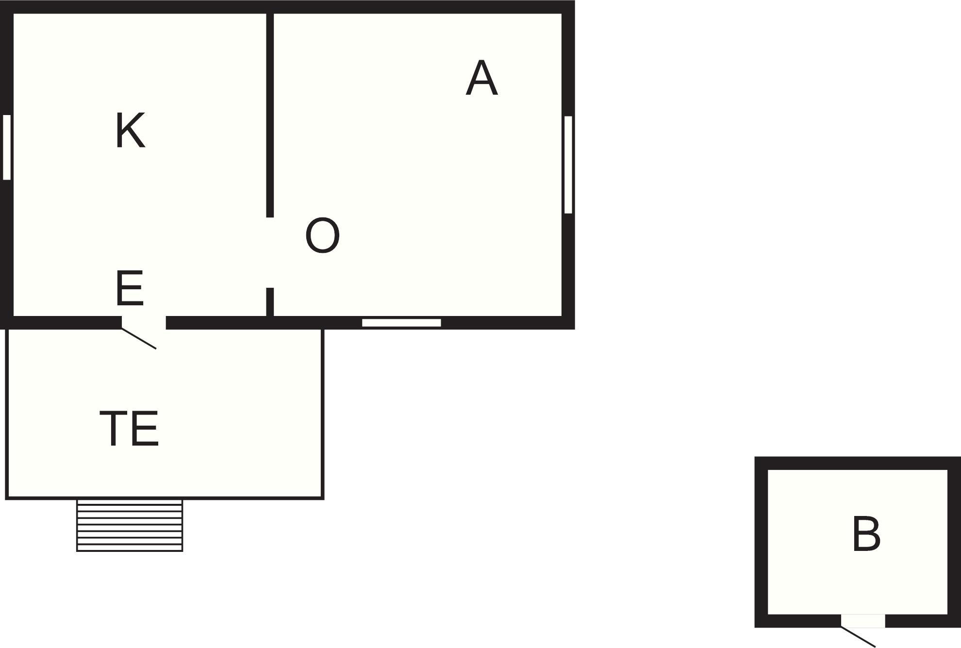 Stugan är av enklare standard med en altan under tak och utemöbel där man njuter morgon, middag och kvällens måltider. Entré direkt in till separat kök med matbord och två stolar. Här finns även spis med 2 plattor, ugn, micro, kaffebryggare och kylskåp (ej frys). Har ni en bebis finns både barnstol och resesäng i stugan.