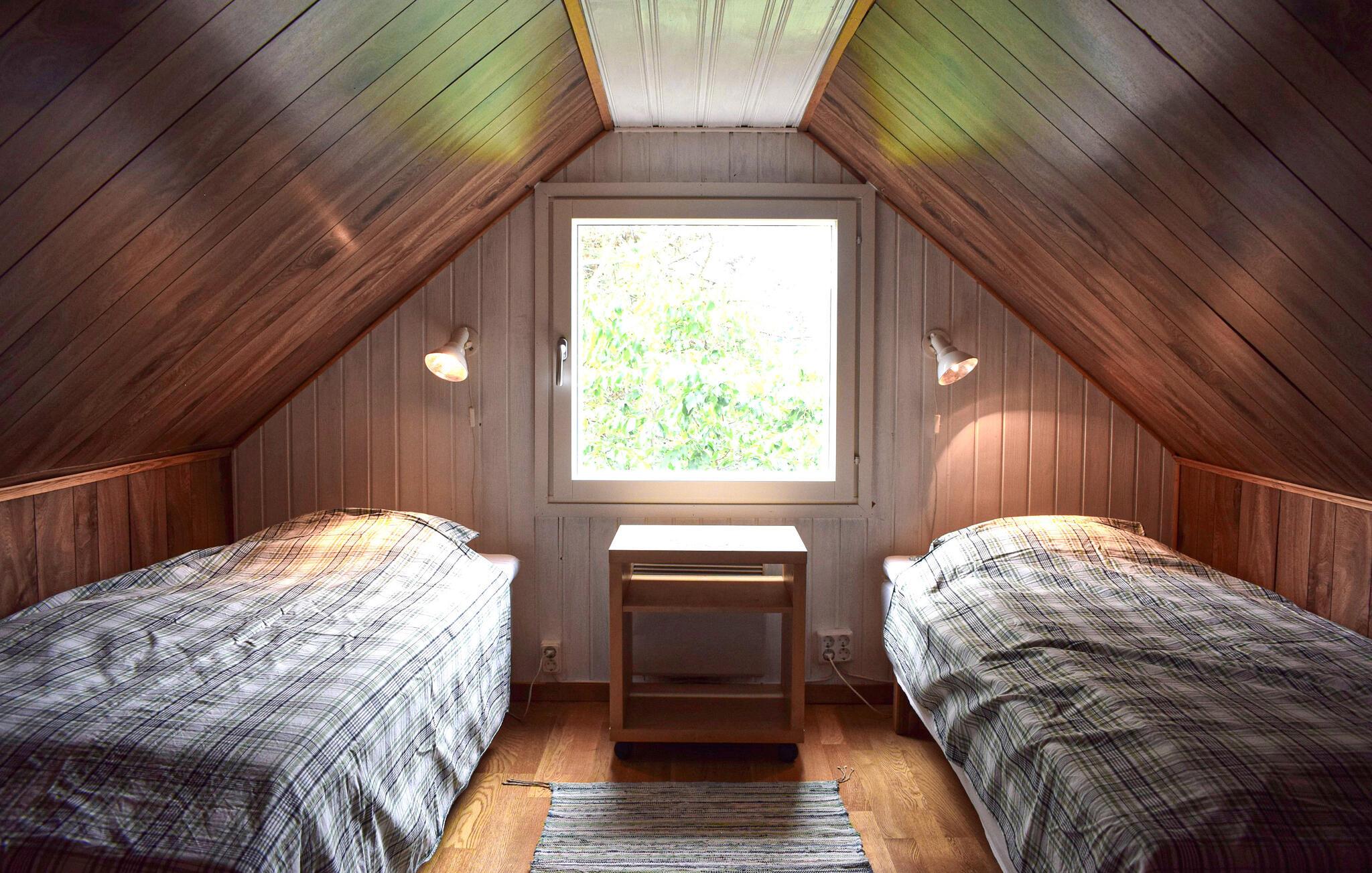 Dette hus er perfekt til en afslappende pause fra hverdagen. Masser af varmt træ, en komfortabel sofa og et tv skaber en behagelig atmosfære, hvor I kan genoplade batterierne. Uanset om I snakker, ser en film eller laver mad sammen i det praktiske køkken – her sætter I tempoet for dagen.