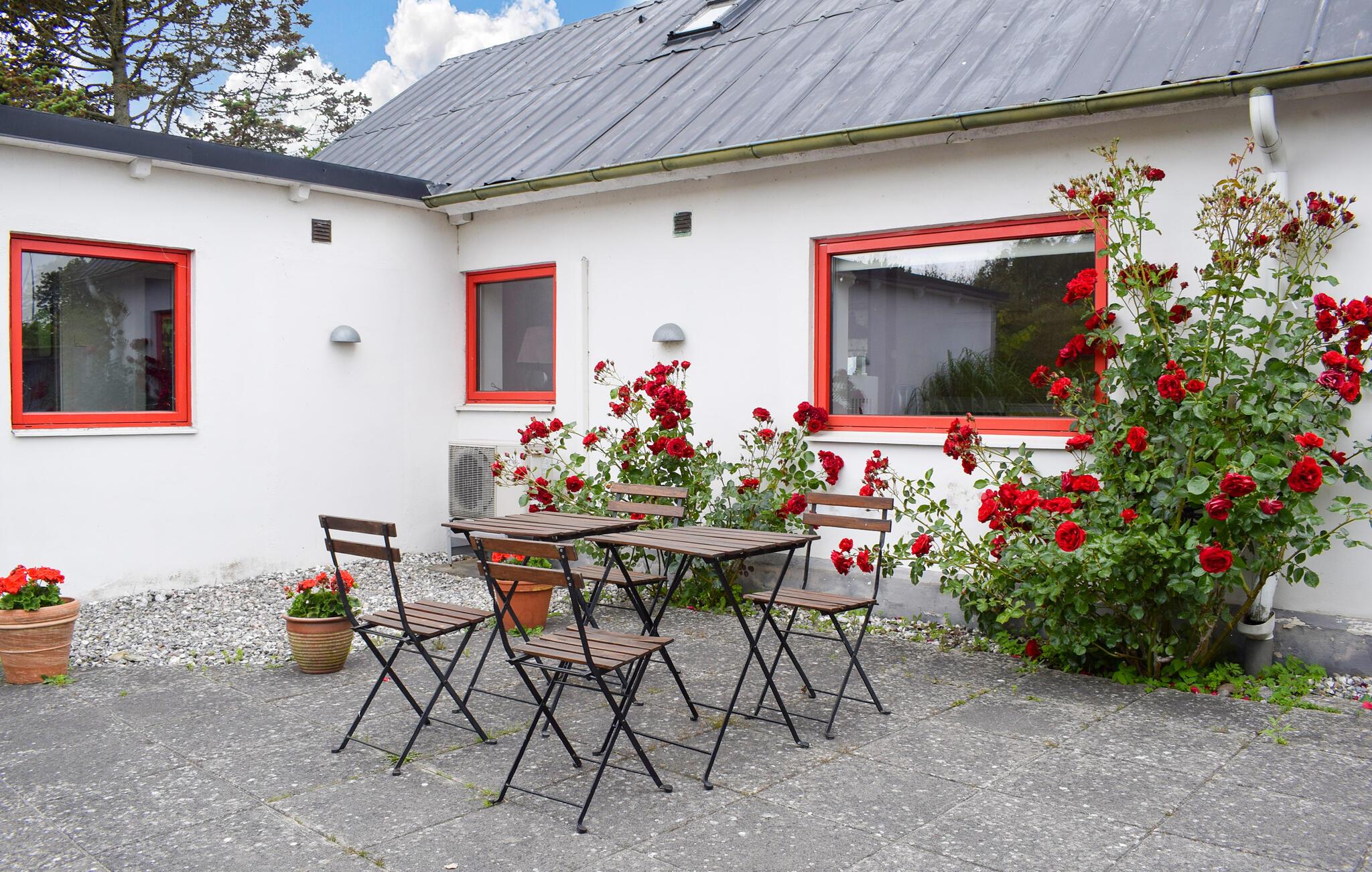 Træd ud på terrassen omgivet af roser ved de første solstråler og nyd den friske morgenluft. Nyd morgenmad med en god kop kaffe og planlæg jeres aktiviteter for den næste dag. tænd op i grillen om aftenen og afslut dagen med et glas vin.