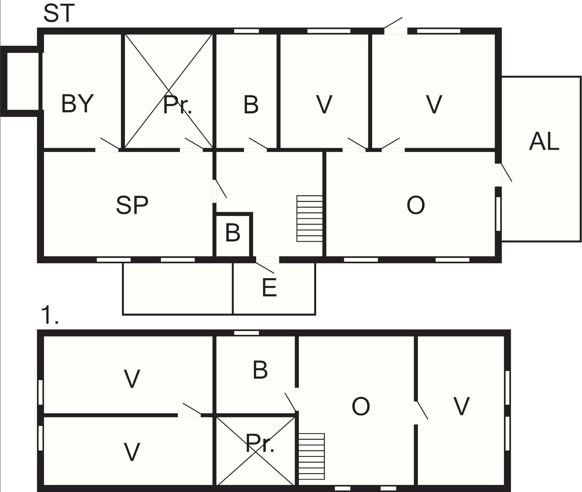 5 Soveværelser: (1S)+(1DO)+(1S)+(1DS)+(2S)