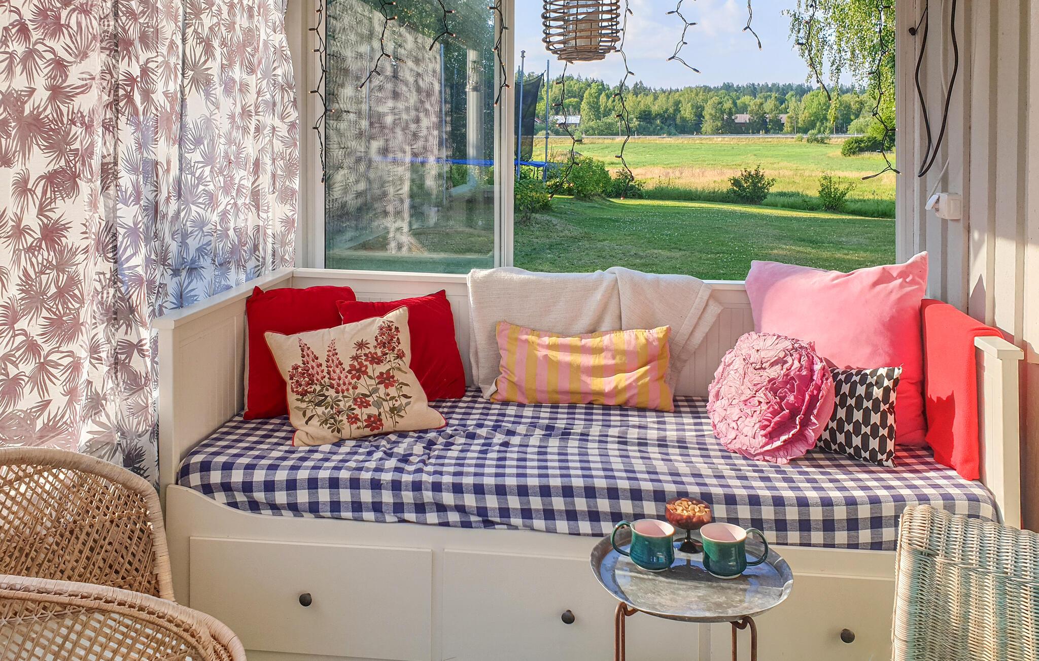 I bor i et vidunderligt område med gode fiske- og bademuligheder og optimale forhold for ture i kajak eller kano, som er den bedste måde at opleve Båvenøerne på. Naturreservatet består af 15 øer og er kendt for sit rige fugleliv og er et populært udflugtsmål. Sparreholms Ekhagar er også et besøg værd. Der er restauranter og butikker i Hälleforsnäs, og hvis I kunne tænke jer at spille golf, er der en glimrende bane i Solbacka. Snør vandrestøvlerne og begiv jer ud på Sörmlandswanderweg, som går gennem Henaredalen. Ruinerne af Nyköpingshus ligger også tæt på huset og er et spændende udflugtsmål.