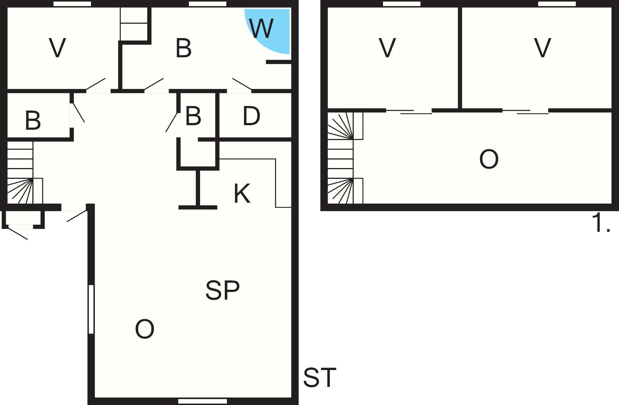 3 Soveværelser: (1DS)+(1DS)+(2S)