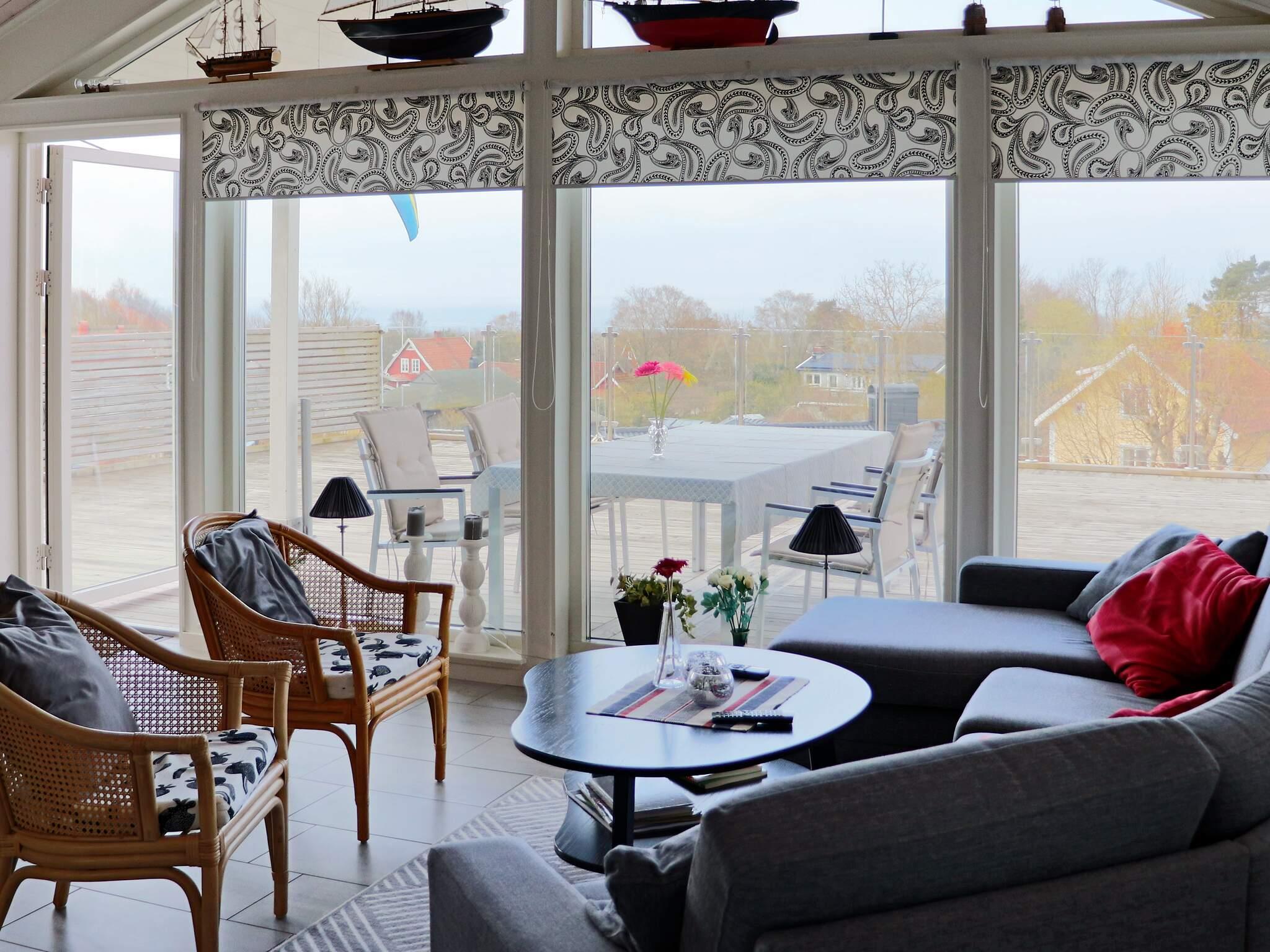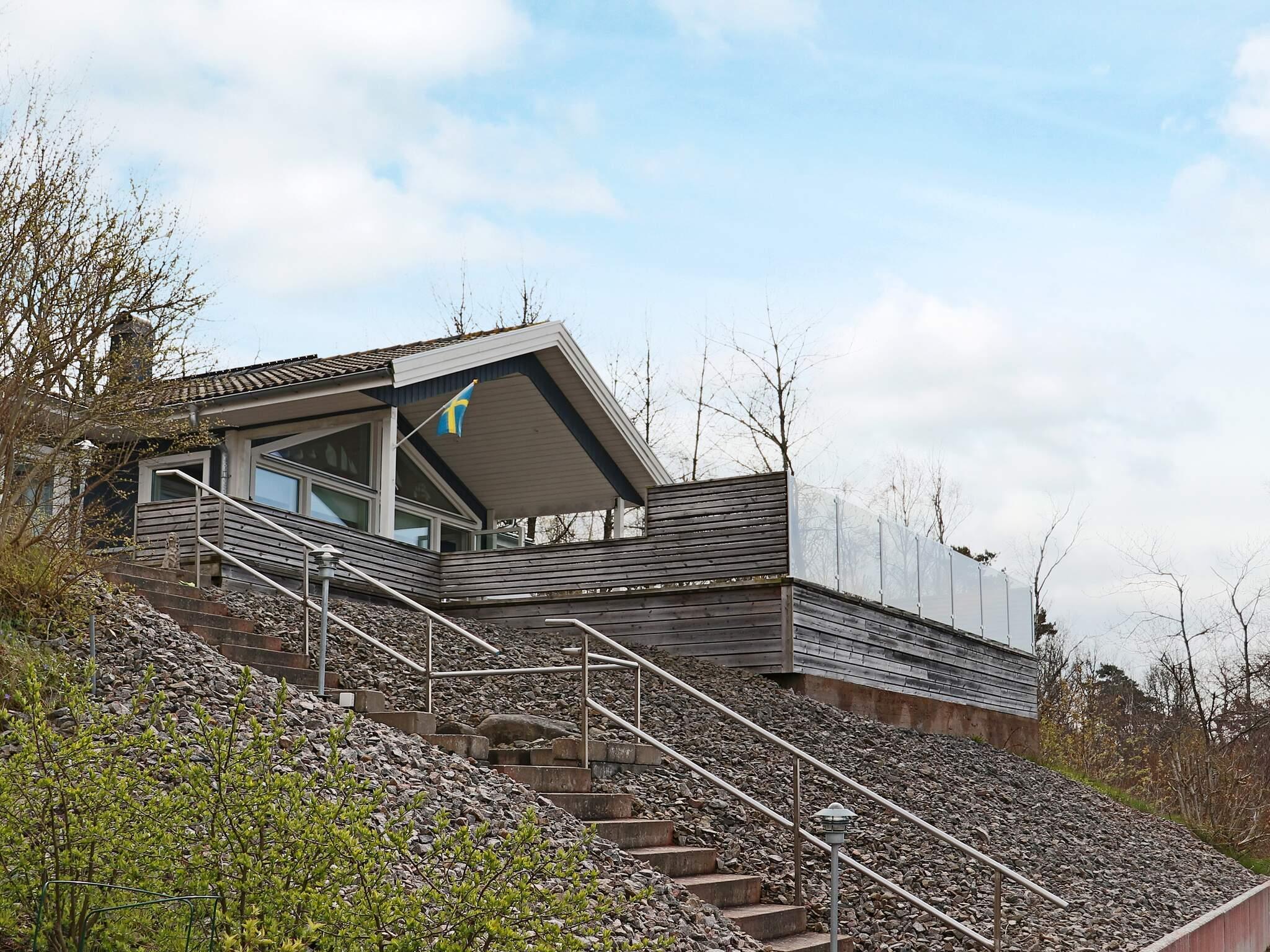 Från uppfarten för er en lång trappa er upp till den kuperade tomten. Från entrén på stugans baksida finns hallen och ett välutrustat badrum med tvättmaskin. Det finns ett större sovrum med en dubbelsäng och två mindre med vardera två enkelsängar. Husets hjärta är det vackra rymliga vardagsrummet med en härlig tak rymd och stora glaspartier mor altanen och havet. Här finns bekväma sittmöbler, modern TV och en värmande braskamin. Intill finns ett välutrustat kök med matplats. Huset har en behaglig golvvärme. Det finns gratis wifi. På husets baksida njuter ni av ert kaffe i morgonsolen. Den rymliga altanen och terrassen har utdragbara vindskydd och man kan spänna upp svalkande segeldukar som skuggar varma sommardagar.