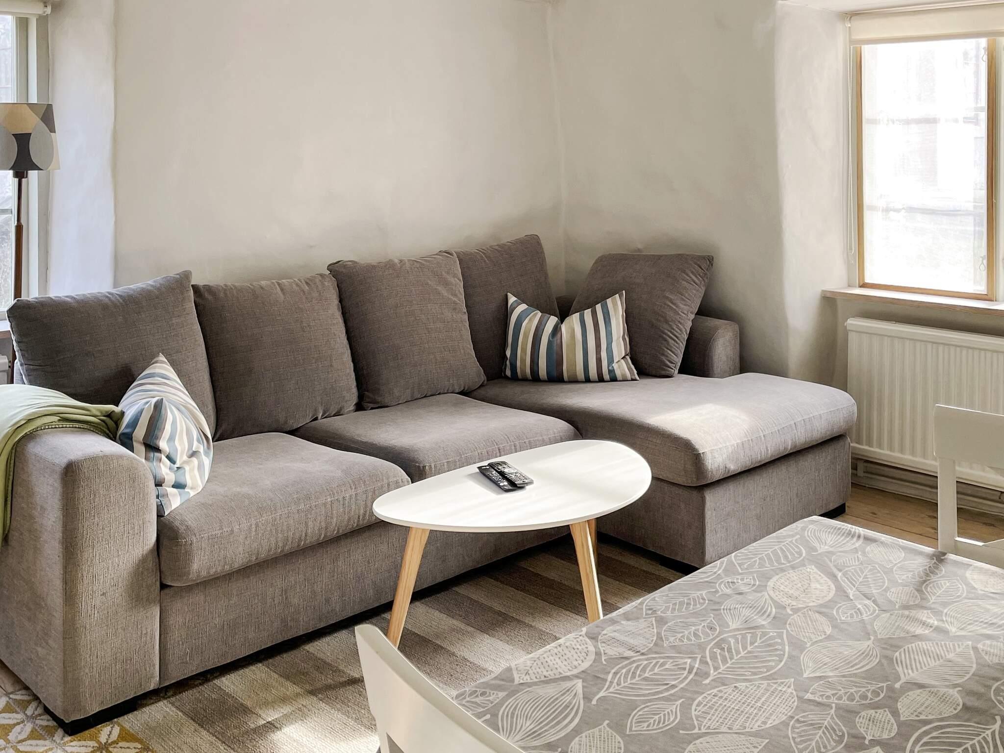 Här bor ni bekvämt i vacker flygel som tidigare varit ett brygghus, som tillhör det stora huvudhuset intill där ägaren bor. Kök och vardagsrum kombinerat i ett med en skön soffa, tv, matbord och pentry. Rogivande stuga med vackra trägolv och stenväggar med djupa fönster. Behagligt sovrum med skön dubbelsäng som leder till det andra sovrummet med familjevåningsäng där den nedre delen är 120 cm bred och den övre 90 cm bred. Utgång till lummig, grönskande baksida med utemöbler och grill, här kan ni njuta av en lugn stund till naturens melodi med vy över de praktfulla kyrktornen.