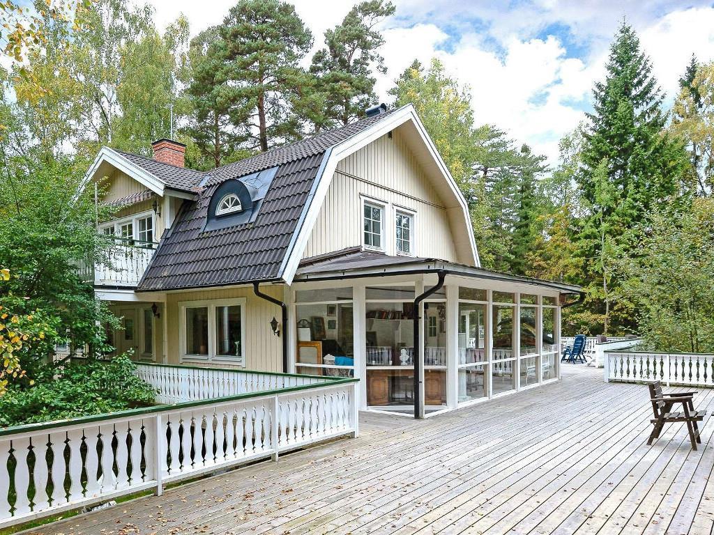 Det herregårdslignende feriehus ligger lige øst for Stockholm, ude i skærgården, og kan nås via broer og langs smukke veje. Kun knap 1 times kørsel fra Stockholms centrum og 300 meter fra en busholdeplads med busforbindelse til Stockholm. 2 både med motor er inkluderet i lejen. Hertil kommer brændeopfyret sauna, mange cykler og gratis Internet. Elforbrug inkluderet i lejeprisen.