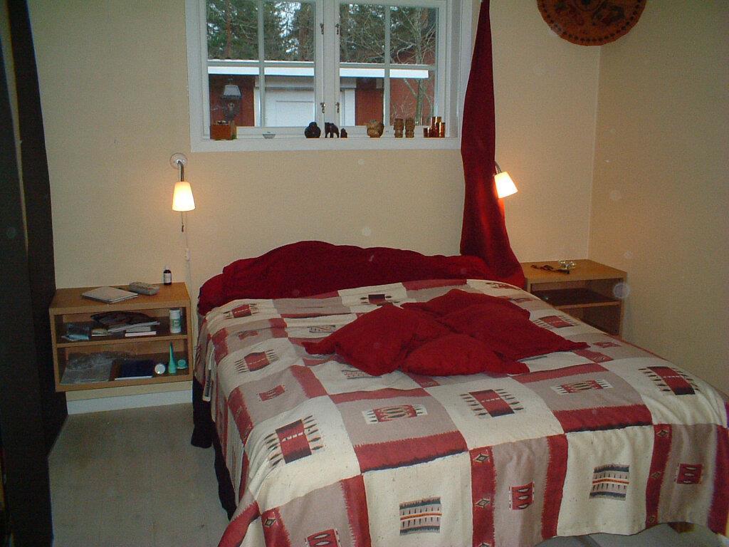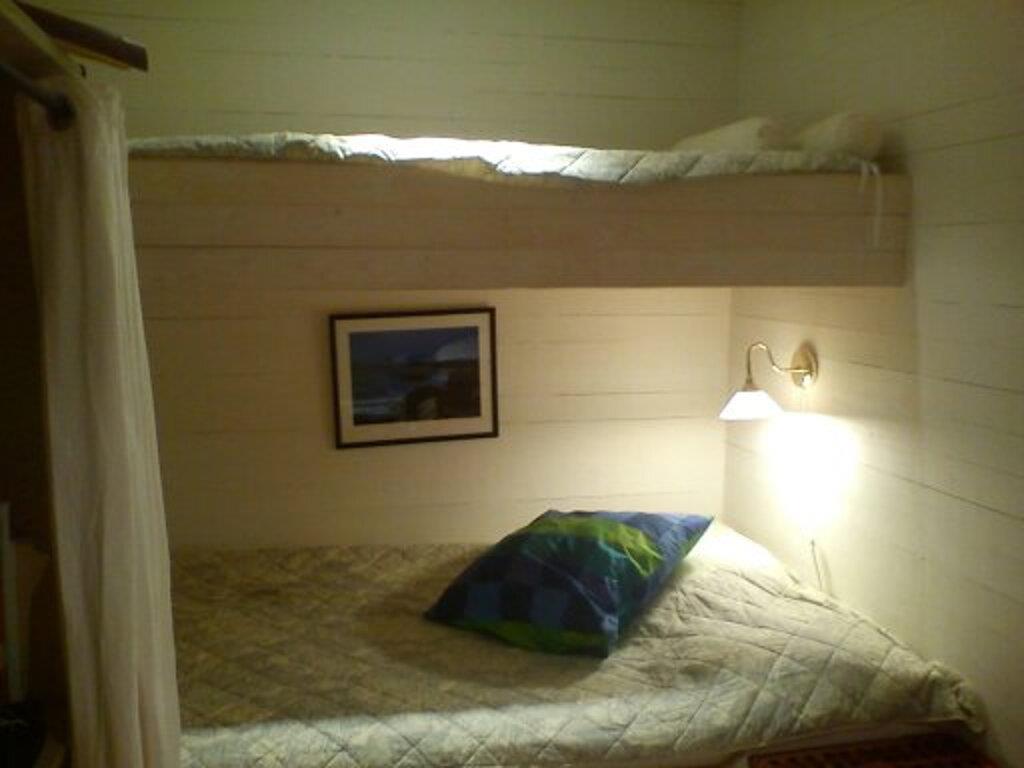 Det hyggelige feriehus er velmøbleret. Der er et dejligt soveværelse med en dobbeltseng og et værelse med en køjeseng. De øvrige sengepladser findes i stuen, hvor der er en sovesofa.