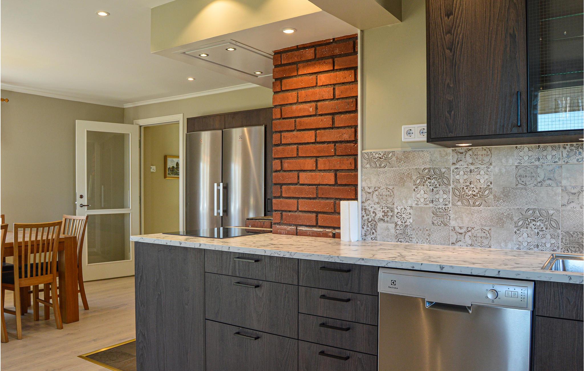 Velkommen til dette charmerende og rummelige feriehus, der fremstår hyggeligt og indbydende. Huset har 2 etager med badeværelser på hver etage. Et af soveværelserne har en brændeovn. Bluetooth-højttalere er tilgængelige i huset. Fra det moderne landkøkken kommer I direkte til terrassen og grillen, om sommeren vil I helt sikkert gerne samles her til dejlige middage.