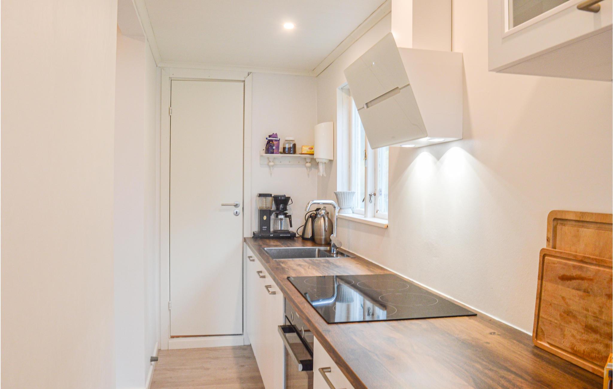 Velkommen til Krokstrand og dette høje sommerhus med panoramaudsigt over fjorden og Norge på den anden side af vandet. Huset er nyrenoveret i stueetagen med nyt køkken, badeværelse og en dejlig brændeovn, der varmer på kølige dage. I stueetagen er der et soveværelse med dobbeltseng. Terrassen med udgang fra køkkenet, hvor du kan sidde ned for at nyde dine måltider, har en fantastisk udsigt over fjorden. En smuk stejl trappe fører dig ovenpå, hvor der er 2 soveværelser hver med 2 enkeltsenge. Et soveværelse har en skydedør.