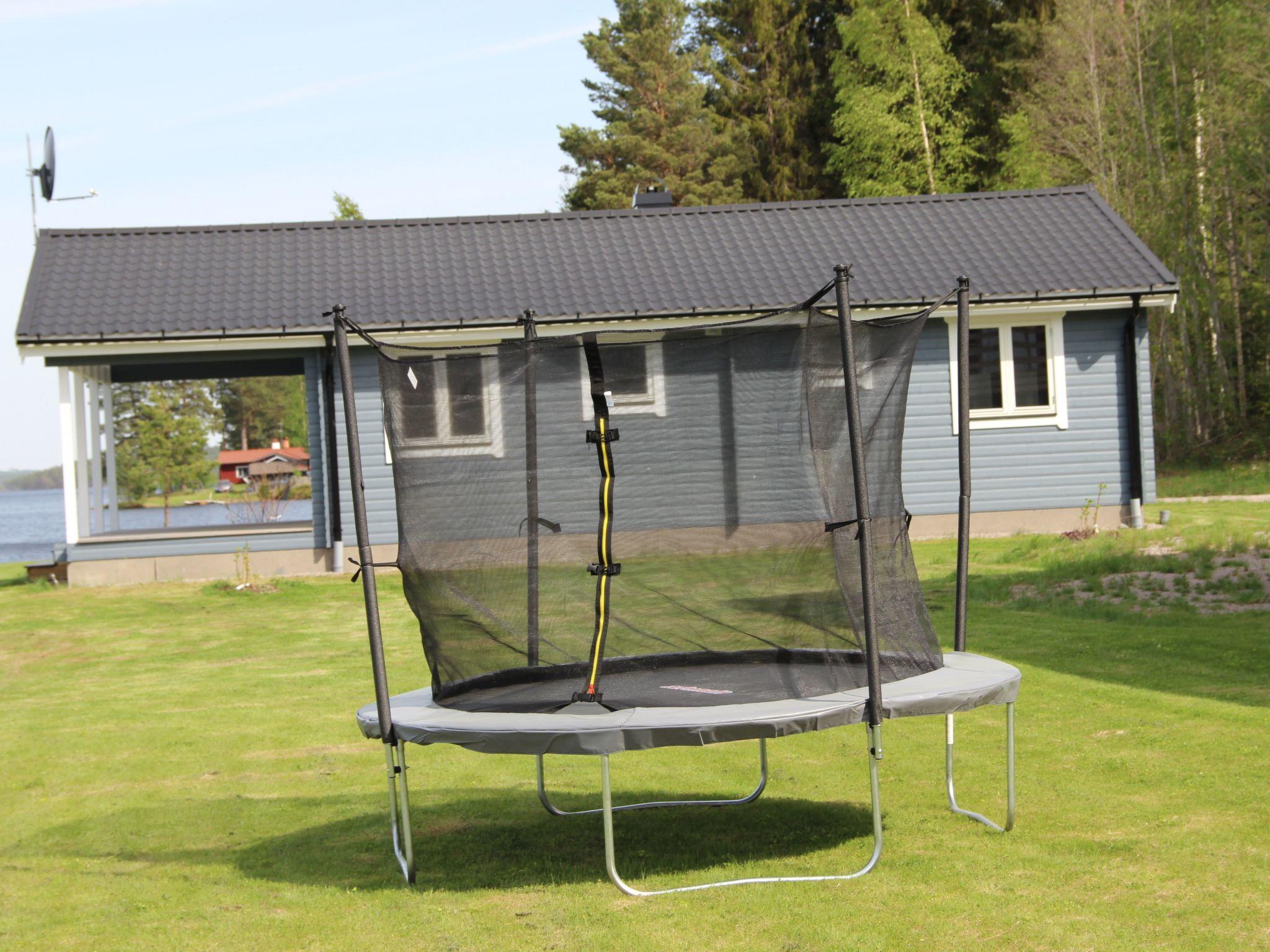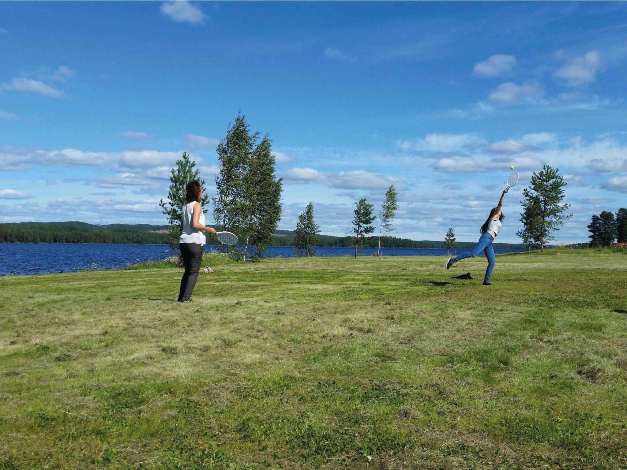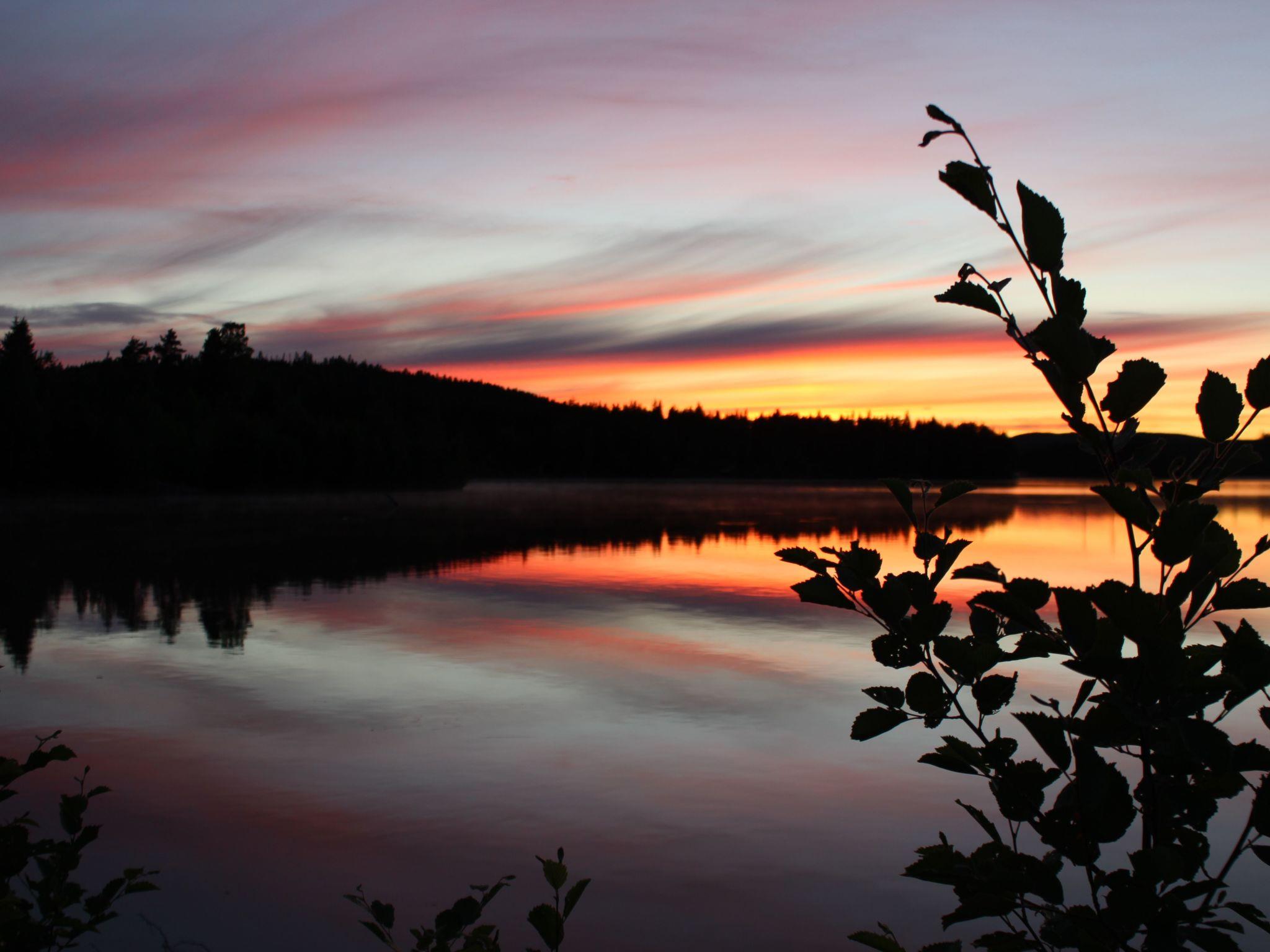 Just on the lake shore with a very large grass area around, lots of fish in the lake for fishing lovers, ramp for the boats and for sunbathing or swimming. Each house has his own picnic wooden table in front of it.Very nice and peaceful area for walking and enjoying the forest.The closest village to Svärdsjö where you can shop and dine is about 13 km far.