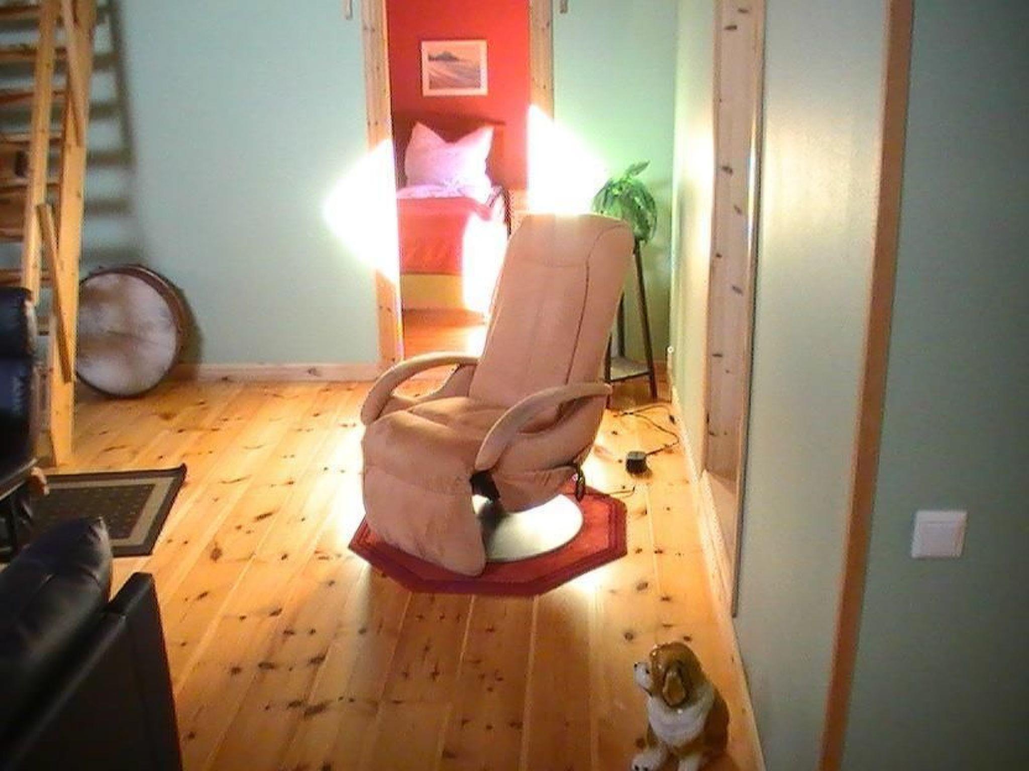 The spacious living room with a soapstone stove has an 85-inch Smart TV with DVD player, satellite TV (German), massage chair and an exercise bike. The kitchen is fully equipped with an induction hob, microwave, dishwasher, fridge-freezer, toaster, coffee machine, etc. In the utility room you will find a washing machine and an ironing board with iron. The bathroom with shower, washbasin and WC is located at the back of the house. The complete room layout can be seen in the floor plan. All rooms are accessible at ground level via a three-step external staircase.