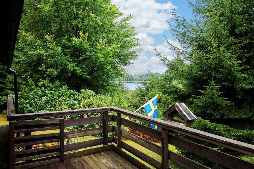 Midt i den idylliske natur ved bredden af den imponerende sø Kalvsjön ligger det toetagers hus Sperlingsholm på en 6.500 m² stor grund. Fra den store træterrasse på øverste etage kan du se søen glitre bag træerne. Her kan du nyde den næsten hørbare stilhed og den direkte nærhed til naturen. Badestedet er lavvandet og stenet, men man kommer hurtigt ud på dybere vand. Der er en bådbro, hvor man kan lægge til med båd eller solbade. Til længerevarende badning anbefaler vi sandstranden Lommaholmen, som kan nås med båd på få minutter, eller de andre sandstrande eller øer ved og i søen. Du kan handle i det lille supermarked »Handlarn« i Kalv, 6,5 km væk, eller i Ätrans Lanthandel i Ätran, 15 km væk.