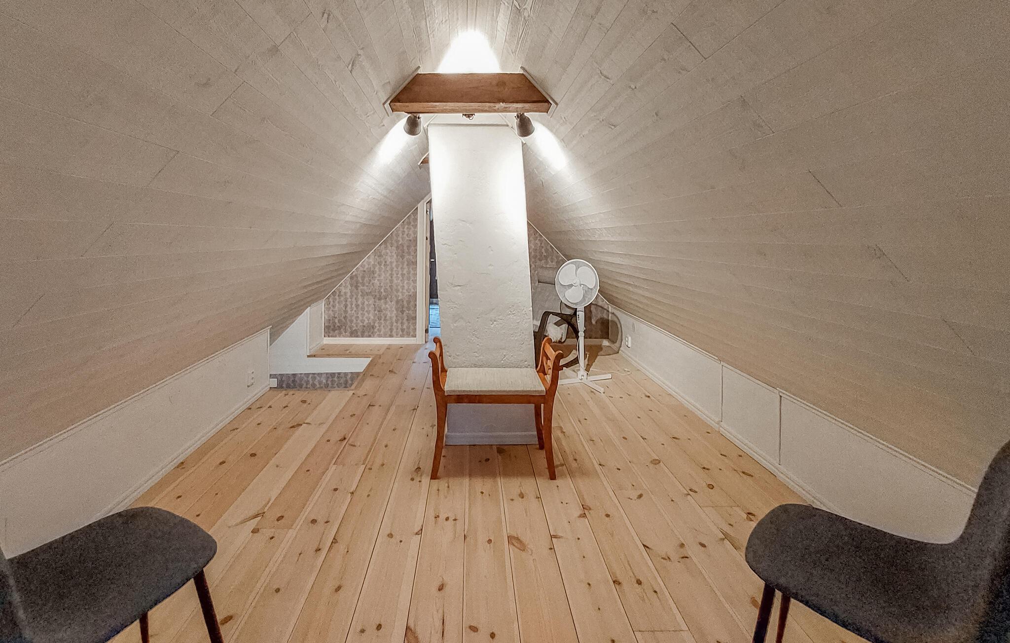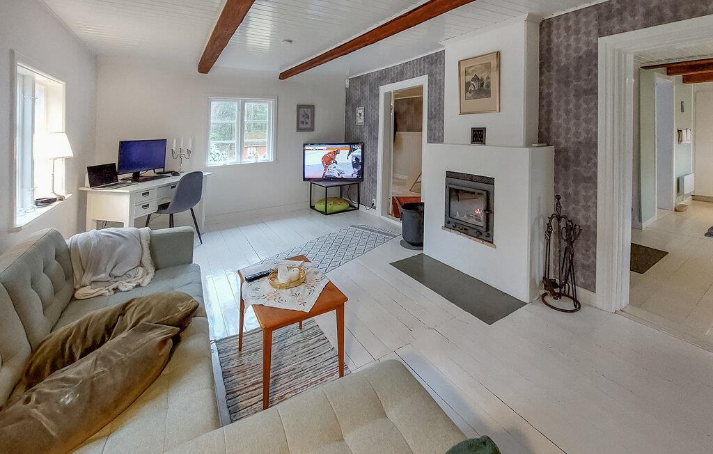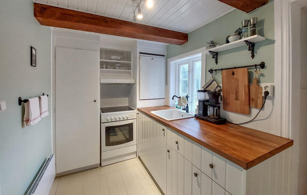 Velkommen til dette rustikke træhus, der ligger i smukke omgivelser midt i skoven og byder på alt, I behøver til en herlig ferie med dem, I holder af. Indretningen fremtræder virkelig hyggeligt med solide træbjælker, gode møbler og en brændeovn, der giver varme og stemning på de lidt køligere dage. Lad amatørkokkene tage sig god tid med madlavningen i køkkenet, inden I dækker op til den store middag ved spisebordet. Efter aftensmaden kan I hive brætspillene frem eller rykke ind i stuen, hvor aftenen kan gå på hæld med lækre snacks og en god film på tv'et.