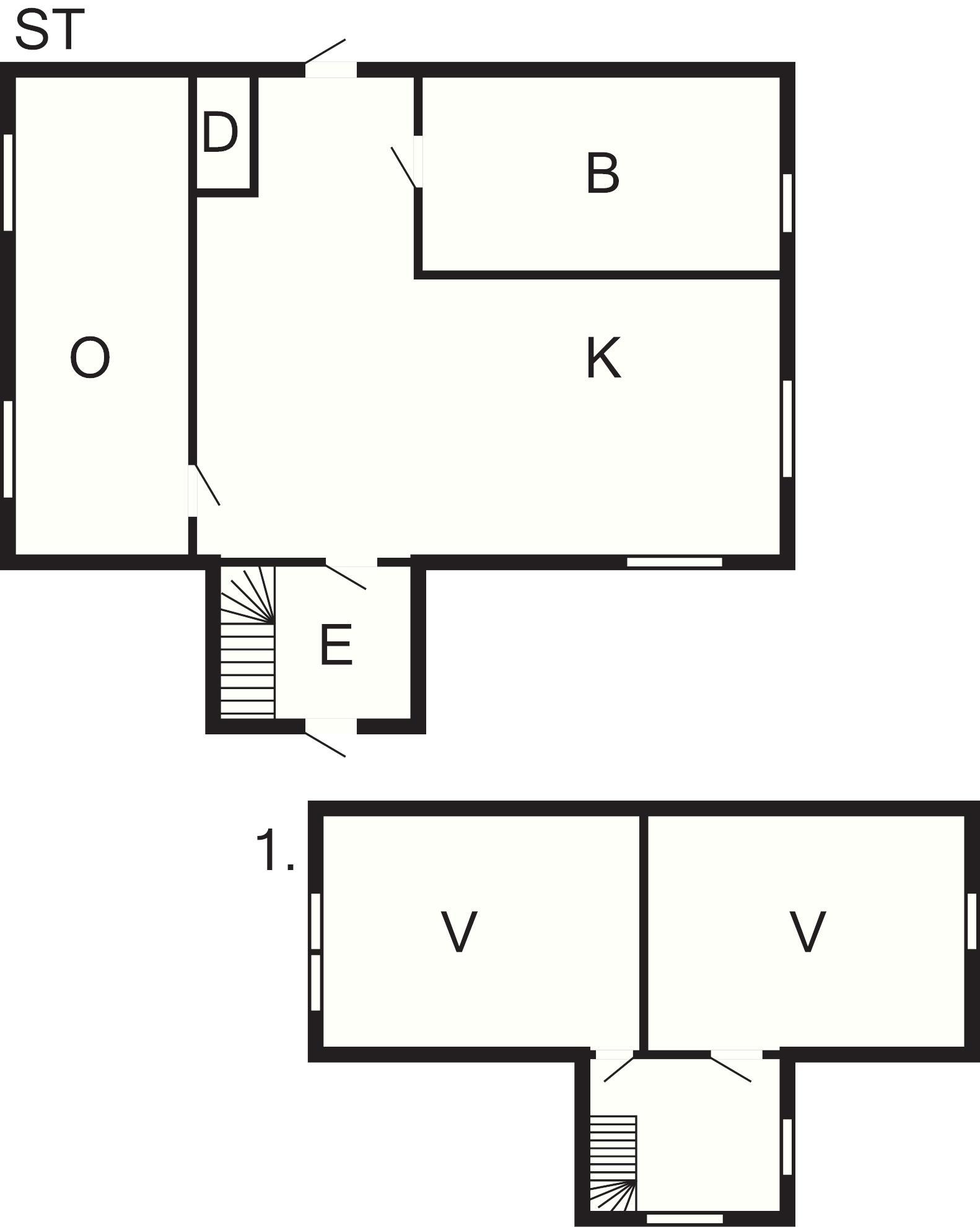 Du välkomnas in i huset via en hall som binder ihop hela huset. Rakt fram på entréplan finner ni både vardagsrum, kök och badrummet. Köket är rymligt och erbjuder även en vedspis samt en mysig matplats med stolar och soffa, perfekt att avnjuta frukosten vid. Till vänster hittar ni vardagsrummet med bäddsoffa, en dagbädd, kontorsplats samt en mysig kamin. Badrummet med golvvärme hittar ni rakt fram från köket och här finns WC, tvättställ samt dusch.