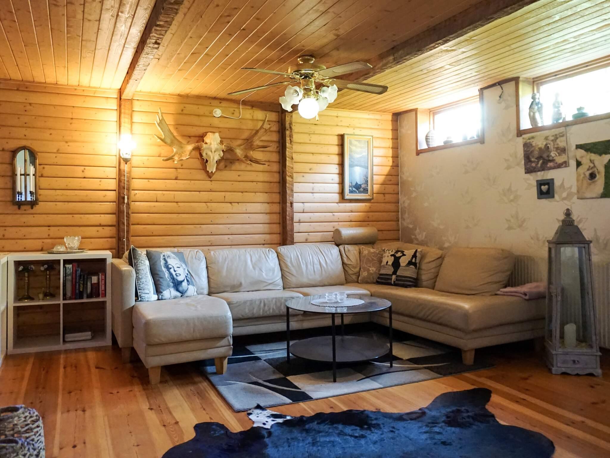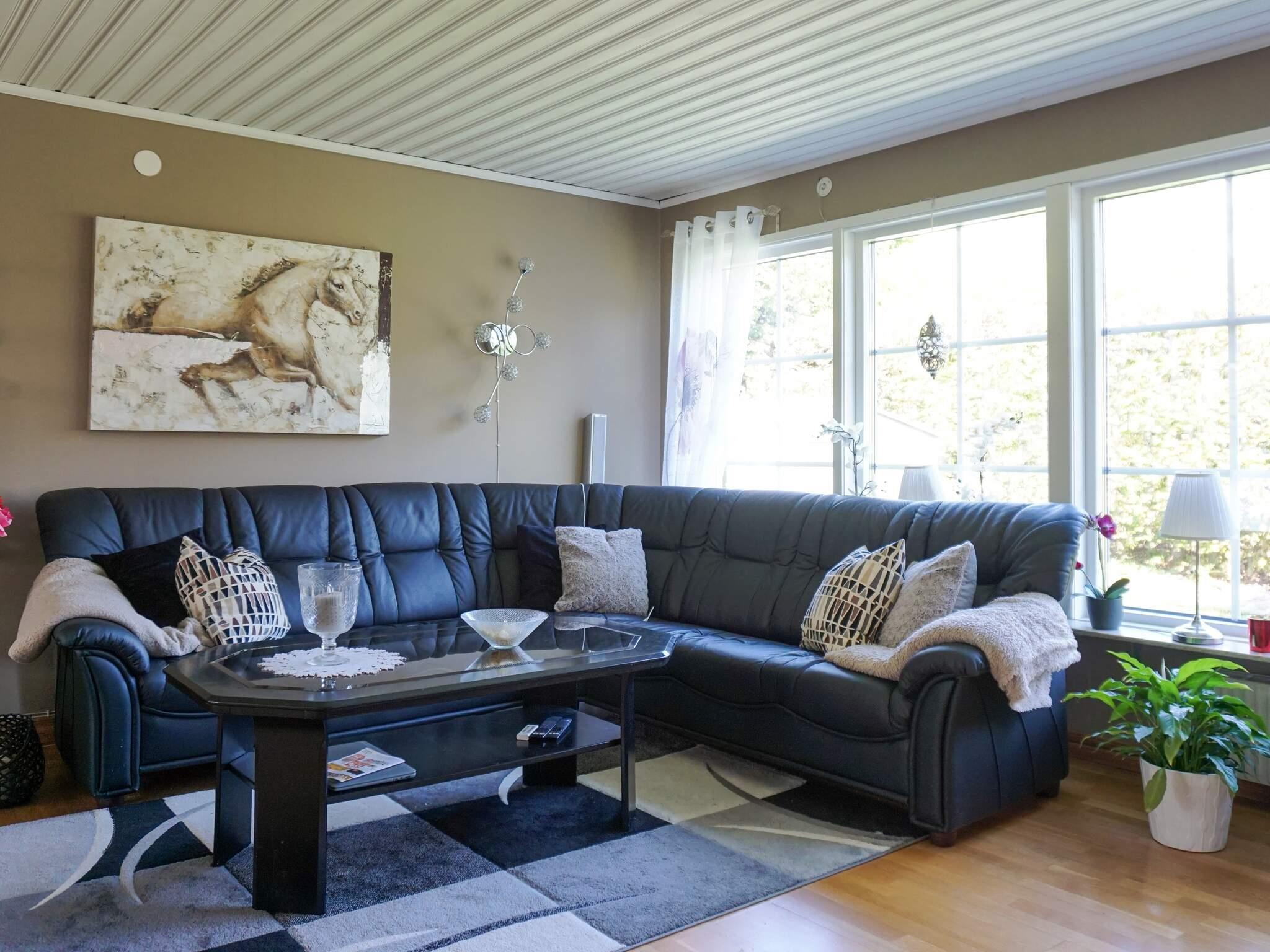 Via villans fina entré kommer ni in i en stor hall som är villans nav varifrån ni når vardagsrum med matsalsmöbel, stor härlig hörnsoffa samt TV, öppet kök med spis, separat ugn, mikro, kyl/frys, kaffebryggare och diskmaskin. Badrum med badkar och golvvärme, två sovrum med sköna dubbelsängar. Från hallen leder en trappa ned till källarplan med stort vardagsrum med öppen spis, soffgrupp samt bar, två sovrum varav ett med dubbelsäng och ett med en enkelsäng. Tvättstuga med tvättmaskin och torktumlare, badrum med dusch samt bastu med plats för 6 personer. Från köket och ett av sovrummen leder altandörrar ut på det stora altanområdet med bubbelbad, sommarmöbler och grill samt ett inglasat uterum med soffgrupp och matgrupp och TV. Härliga platser för trevlig gemenskap och goda samtal över en god bit mat och något gott i glaset. Villan har fiberuppkoppling.