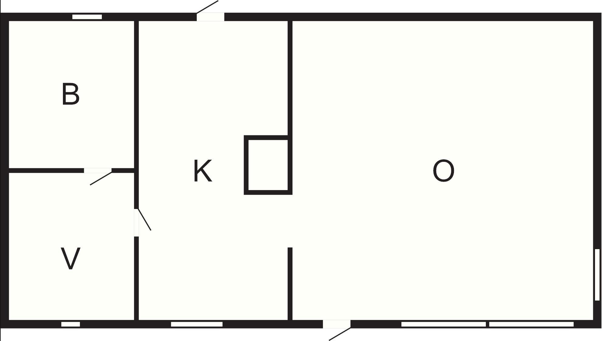 Huset består av ett kök och matplats som är öppet mot vardagsrummet. I vardagsrummet finns det en säng som kan användas som en 80 säng eller 160, samt en bäddsoffa. Bäddsoffan har en tempur madrass och är enligt ägaren bästa sängen i huset. Vid sidan av dubbelsängen i bäddsoffan finns möjlighet att ha en liten 70cm madrass på soffan för tex ett litet barn. Det finns ett sovrum med en enkel säng som man går genom för att nå det stor nyrenoverade badrummet. I stugan finns så man kan ta med sig sitt boxerkort hemifrån och koppla in till TV.