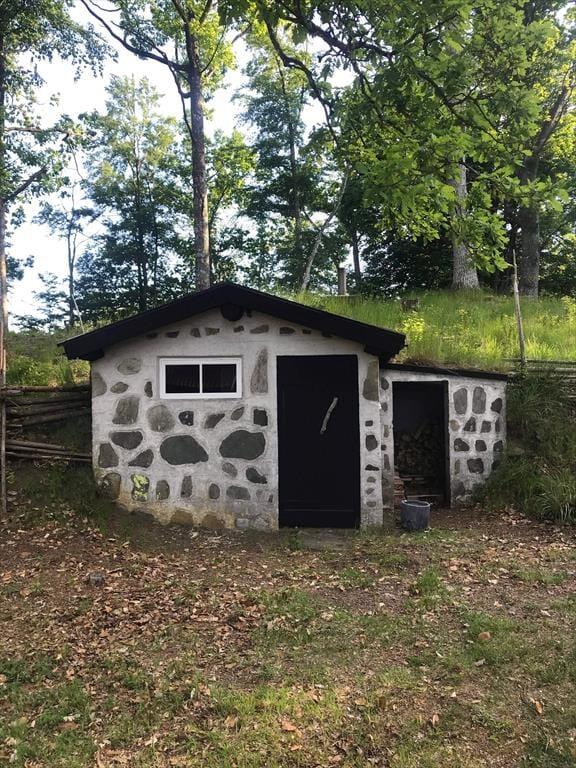Hytten er fra det 17. århundrede og blev oprindeligt opført et andet sted. Sidenhen er hytten blevet flyttet, til dens nuværende plads ved Stora Hensjö sø, og er blevet genopbygget i sin oprindelige stand. Hytten har et kombineret rum med stue og soveværelse, indrettet med rustikke møbler og to sovepladser. Hytten kan opvarmes med el. Køkkenet er udstyret med elkomfur, køleskab med fryseboks og åben kamin. Hytten har dog ingen vandtilslutning, men eftersom den nærliggende sø har drikkevandskvalitet, er dette intet problem (Tingsryd kommune får sit drikkevand fra denne sø). Ellers kan der hentes vand fra husejerens hus, ca 300 meter fra hytten. Overfor hytten ligger et lille gæstehus, med yderligere to sovepladser. Udenfor er en bruser og en håndvask med koldt vand. Både bruser og håndvask forsynes med vand fra søen, via en pumpe. Toilettet er et udendørs das, som befinder sig bag hytten i et skur. Et særligt highlight er saunaen, i en lille udbygning, som kan opvarmes med træ. Derudover er der havemøbler, grill og robåd, samt et bålsted ved søbredden, med en trefods hængegrill.