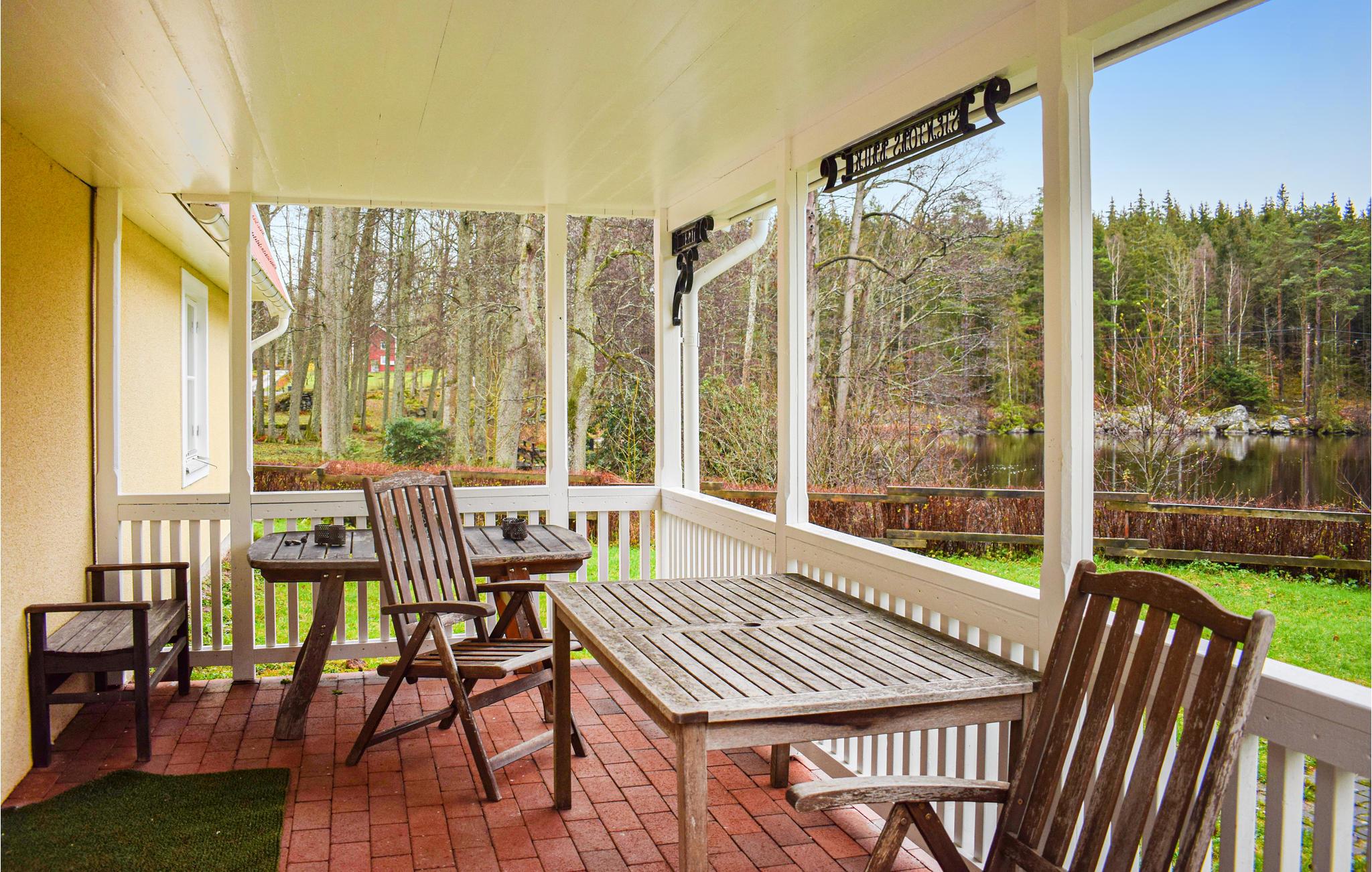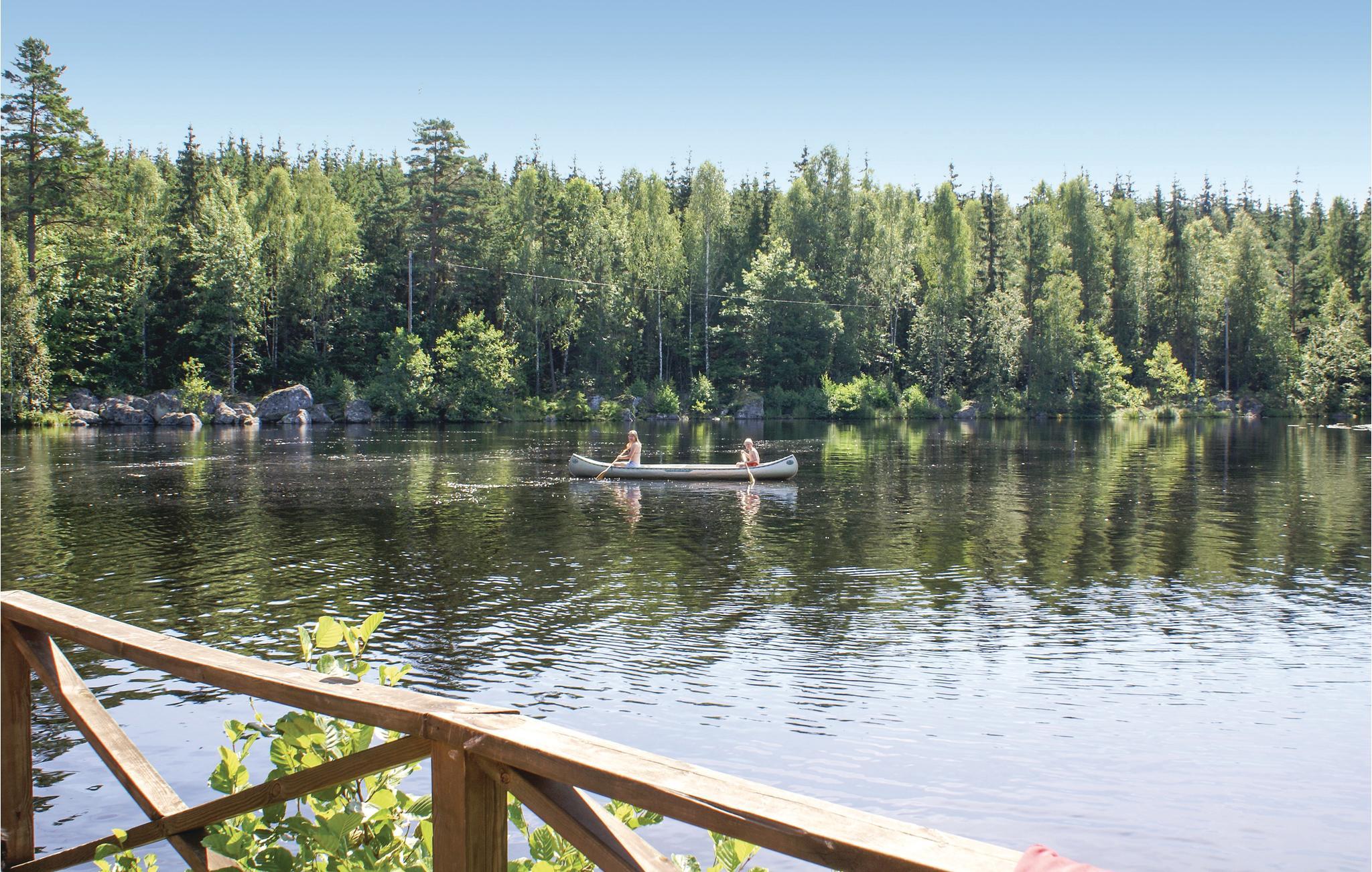 Feriehuset har masser af opholdsarealer, og alle soveværelser ligger på anden sal. Feriehuset har en dejlig gårdhave og er meget naturskønt i et sørigt område, hvor flere af søerne er forbundet, så du kan tage på spændende udflugter på vandet. I den nærliggende sø Tiken er der både fine fiskemuligheder og bademuligheder.
