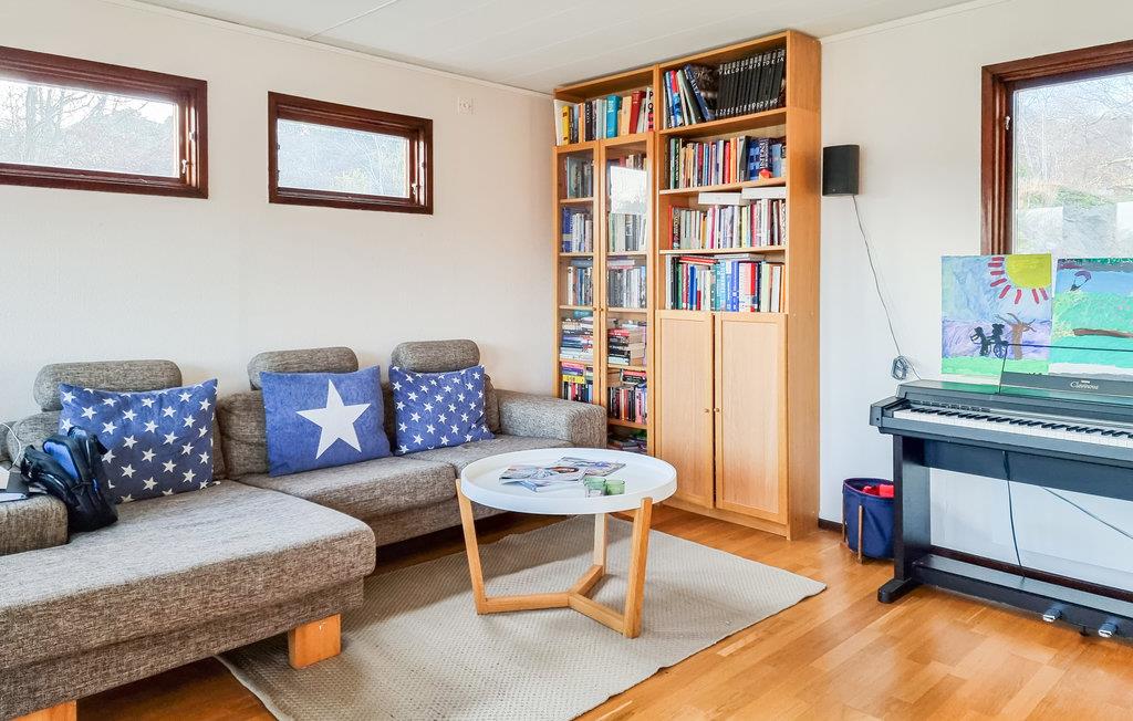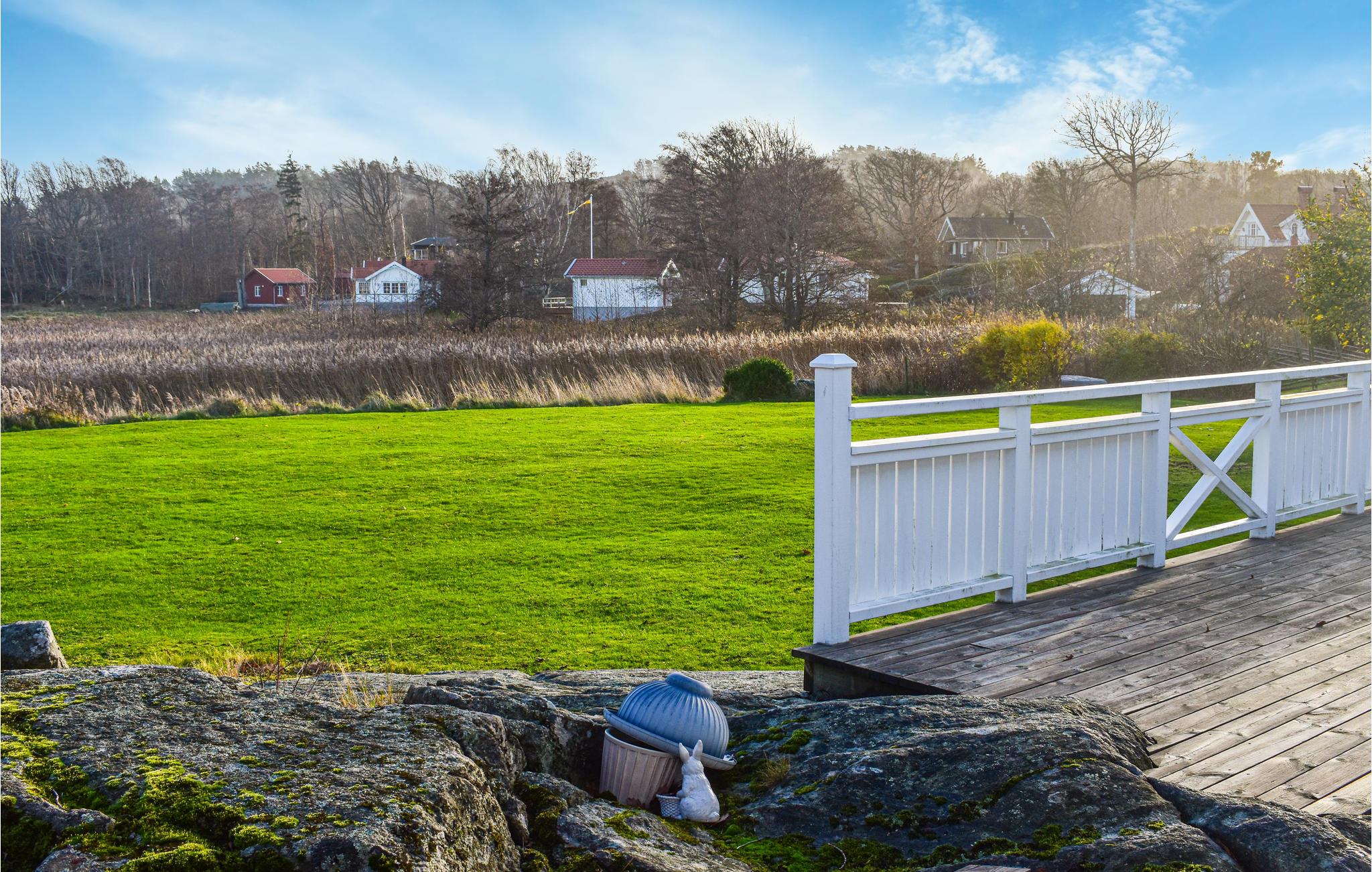 Dette hus giver jer masser af plads til at udfolde jer og nyde den svenske sommer fuldt ud. I det veldisponerede og rummelige feriehus kan I glæde jer til de stille morgentimer med morgenmad og solopgang, mens I har udsigt til fjorden og en kæmpe have med træveranda. I kan nyde solen, gå lange ture eller se frem til en hyggelig aften med friskfangede fisk på grillen. Stranden ved en klippekyst er kun 250 m væk.