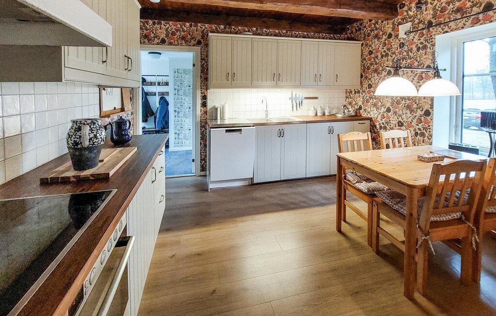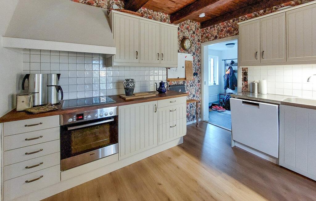 I dette hus fra 1700-tallet får I en både rummelig, hyggelig og komfortabel feriebolig, der danner rammen om årets bedste uger midt i den smukke natur. Indretningen er et vellykket af mix af rustikke tapeter og bjælker, komfortable møbler og moderne faciliteter, der sørger for, at I kan slappe af uden at skulle bekymre jer det mindste. Hvil benene her efter en aktiv feriedag og rund af i sofaområdet, hvor I kan spille spil, se film eller nyde livet over et godt glas vin til langt ud på aftenen.
