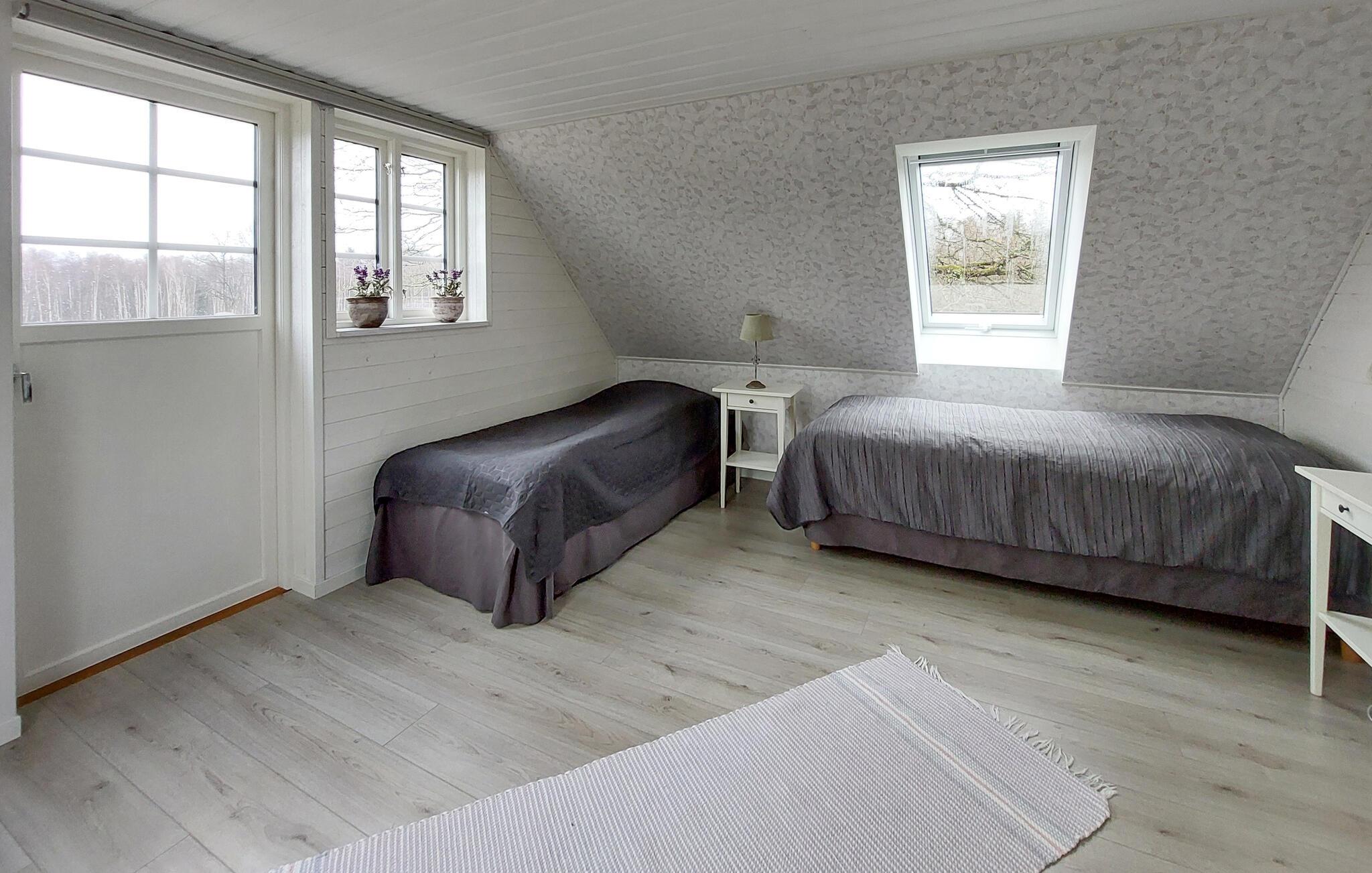 Nyd udsigten over enge og skove i dette rummelige dobbelthus, der ligger tæt på Tjörnarpa-søen.