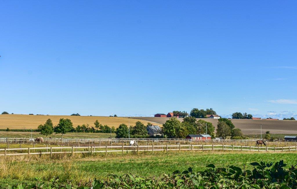 Denne hyggelige bolig ligger på en stor gård i den maleriske Österlen-region, omgivet af bølgende marker og gårdens dyr. jeres sommerhus er ideelt for familier eller grupper, der leder efter en blanding af afslapning og oplevelser. find jer godt til rette i den store sofa i stuen og nyd samværet med udsigt til landskabet fra vinduerne. Tilbring hyggelige aftener med en film eller en spilleaften ved træbordet. Tilbered jeres måltider i køkkenet og server jeres kulinariske kreationer ved det tilstødende spisebord.
