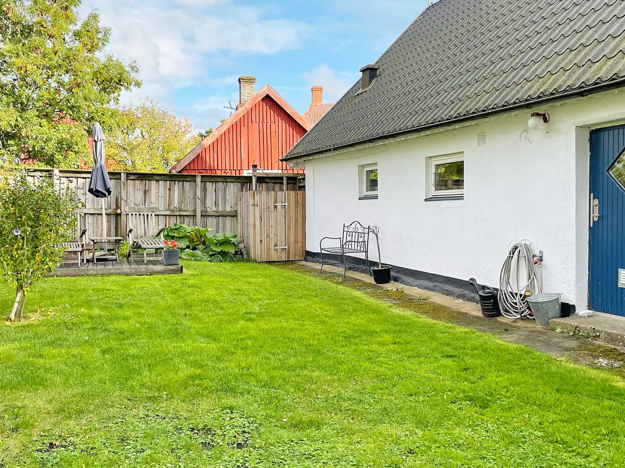 På baksidan av huset spenderar du tiden utomhus. Här finns utemöbler samt gasolgrill. Du har även gräsmatta och en jättefin utsikt! En pergola som dessutom skyddar dig från det värsta regnet. Välkommen till en Skånelänga där du verkligen har rätt förutsättningar för en lyckad semester!