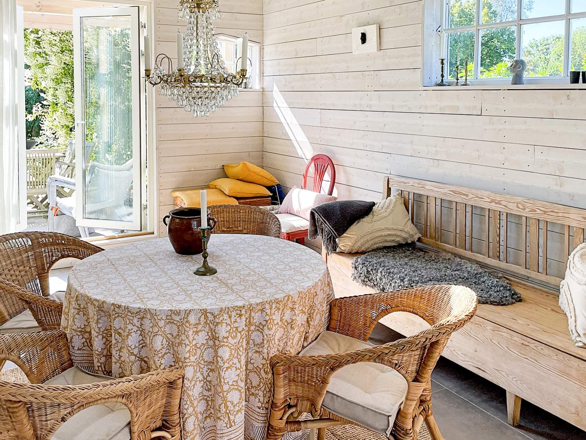Det verkliga guldkornet är det förtrollande orangeriet i anslutning till vardagsrummet. Här kan du sitta och njuta en sen kväll med diverse delikatesser som du handlat på dig och altandörrarna öppnas upp till den underbara trädgården, där du kan ta morgonkaffet eller njuta av solen. Trädgården är en fröjd för ögat med frodig växtlighet och en fri utsikt. Framsidan av huset har en inbjudande trädgård där du kan njuta av lugna stunder.