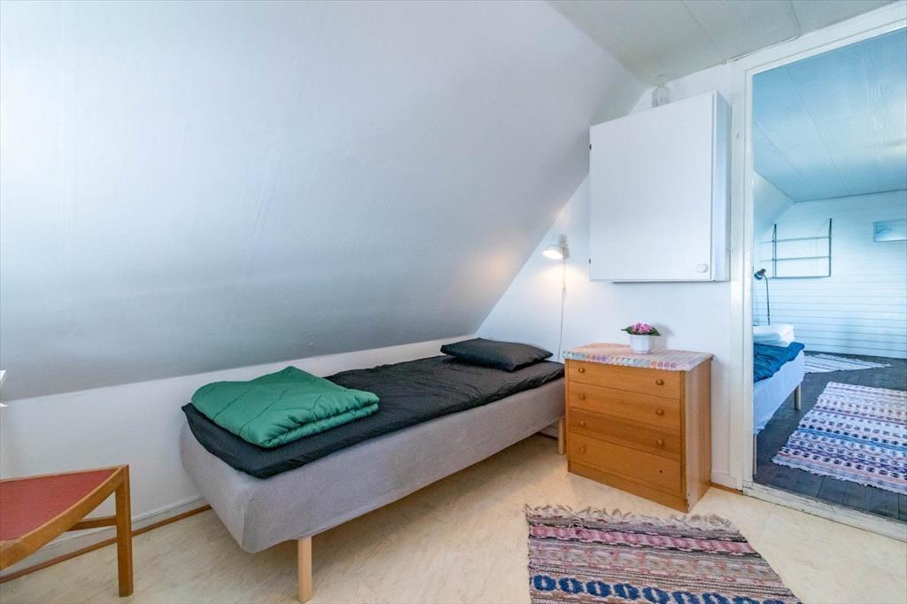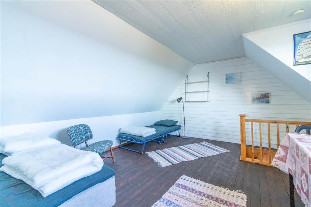 Huset er 70 m² stort og har plads til op til 5 personer. Kæledyr er også velkomne. Det er især interessant for feriegæster, der ikke har brug for luksus, men blot søger ro og afsondrethed ved den svenske kyst. Gennem hoveddøren kommer du direkte ind i stuen med hyggelige sofaer og spisebord til 6 personer. Der er radio med cd-afspiller. Fra spisepladsen kommer du gennem en anden dør ind i køkkenet, som ud over en lille ovn, 2-plades elkomfur, køleskab og fryser, mikroovn og kaffemaskine indeholder alt, hvad du har brug for til at tilberede og servere almindelige retter. Gennem køkkenet kommer du også ind i badeværelset med brusekabine og toilet. Via en trætrappe fra stuen kommer du til øverste etage med skrå lofter og de to soveværelser. Trappen fører direkte til det første soveværelse, som er udstyret med to enkeltsenge (kan kombineres til en dobbeltseng) og en enkelt klapseng samt et bord og to stole. Du skal gennem dette værelse for at komme ind i det andet soveværelse, der er adskilt af en dør, og som har to enkeltsenge samt et skrivebord med stol. Det andet soveværelse har adgang til den glasinddækkede altan med siddekrog, hvorfra du kan nyde en fantastisk panoramaudsigt over Østersøen og den vilde kyst.