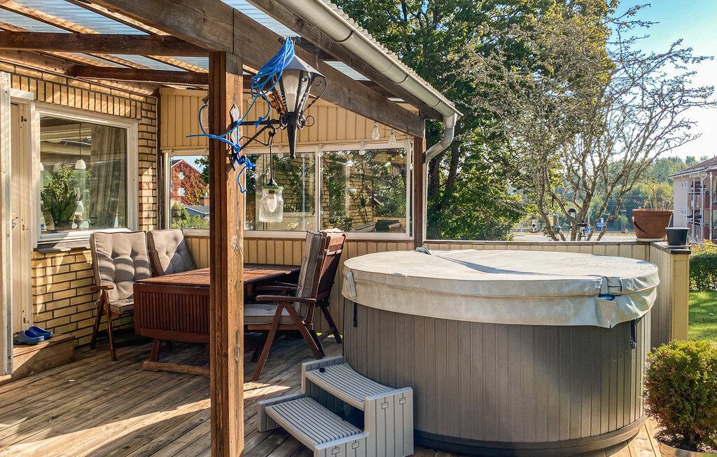 På den delvist overdækkede terrasse venter et indbydende boblebad på at forkæle jer efter en oplevelsesrig dag. Den rummelige have giver jeres børn plads til leg, mens I kan nyde afslapning og solen.