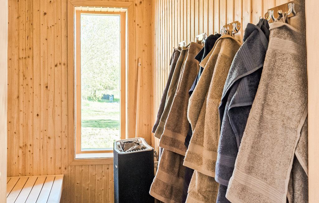 Forkæl jer selv med ro og afslapning og tilbring jeres ferie i dette smukke hus. Den moderne simple indretning kombinerer komfort og hygge. Det praktiske, åbne køkken er veludstyret og indbyder til at lave madaftener sammen. Når I skal koble af og snakke om jeres begivenhedsrige dag, kan I hoppe en tur i saunaen. Og bagefter kan I nyde hinandens selskab i den bløde sofa og finde et brætspil frem.