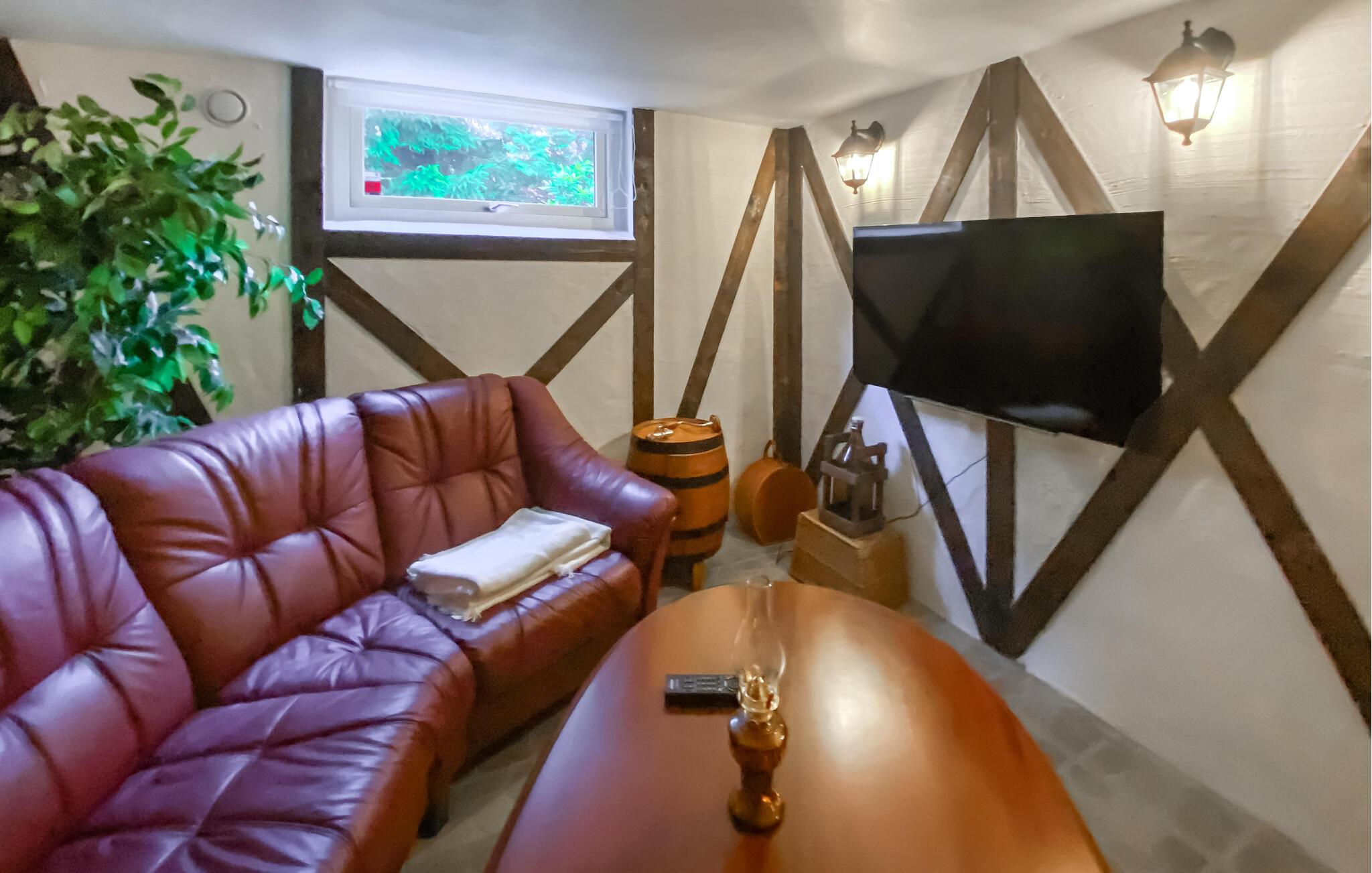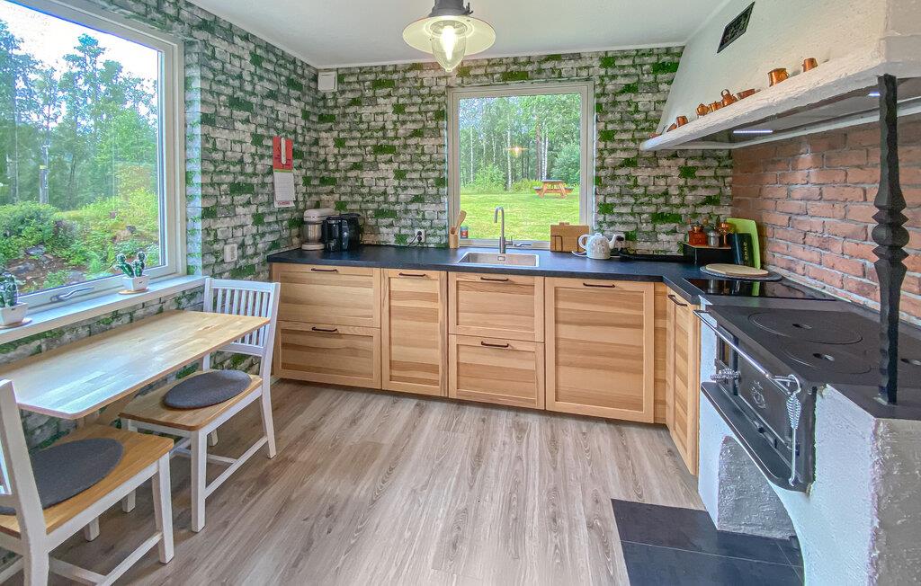 Oplev en afslappende ferie i dette maleriske feriehus ved vandet med sauna. I vil straks føle jer hjemme i dette rummelige hus. Natursten og trælook, vintagemøbler og gennemtænkte detaljer skaber en unik atmosfære. Slap af i lædersofaen med en lækker kop kaffe, lav lækre måltider i køkkenet, eller varm jer op i saunaen på køligere dage. Træd ud i den store, grønne have ved solskinnets første stråler og find et dejligt sted til morgenmad. Her er I tæt på naturen og vandet. En sti fører jer direkte til en afsidesliggende sø, hvor I kan svømme, og lidt længere fremme er der også en badebro. Udforsk de skovklædte omgivelser omkring Sjötofta på en vandretur eller cykeltur gennem det idylliske landskab. Besøg det lokale historiske museum i Tranemo, eller oplev Komosse naturreservat, en af de største højmoser i Sydsverige, med velholdte træstier og imponerende flora. En tur til søen Åsunden er også umagen værd. Her finder I smukke badepladser, picnicområder og bådudlejning til en spændende dag ved vandet.