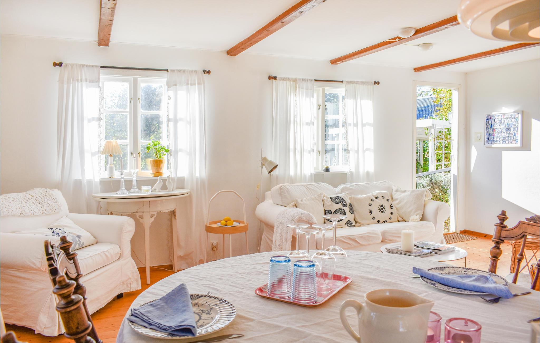 Lige uden for Trelleborg finder I dette kærligt indrettede feriehus, hvor I rigtig kan koble af. Huset med enkel komfort er præget af sommerlig friskhed og et interiør i romantisk stil, der sammen indbyder til lange aftener og hyggelige stunder foran pejsen. Husets klassiske idyl afrundes af haven. Nyd dagens måltider på den overdækkede terrasse og forfriskninger ved cafébordet. Haven er perfekt til leg for familiens yngste medlemmer. Den smukke sandstrand ligger kun en kort gåtur væk, og vandrestien Sydkustleden løber langs grænsen til husets naturgrund.