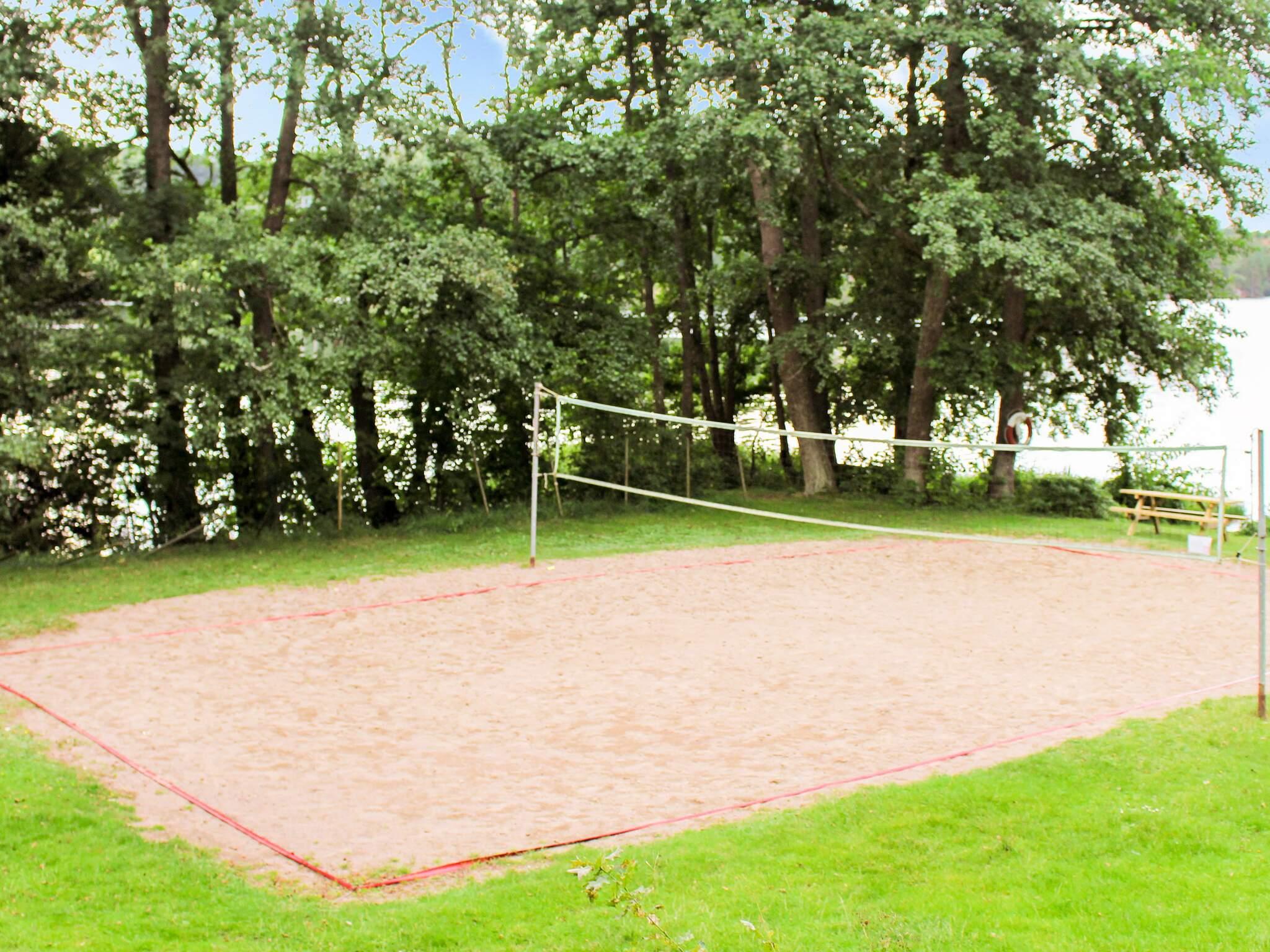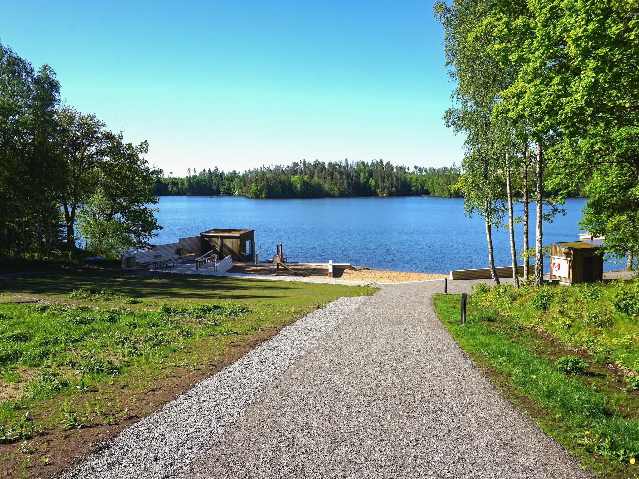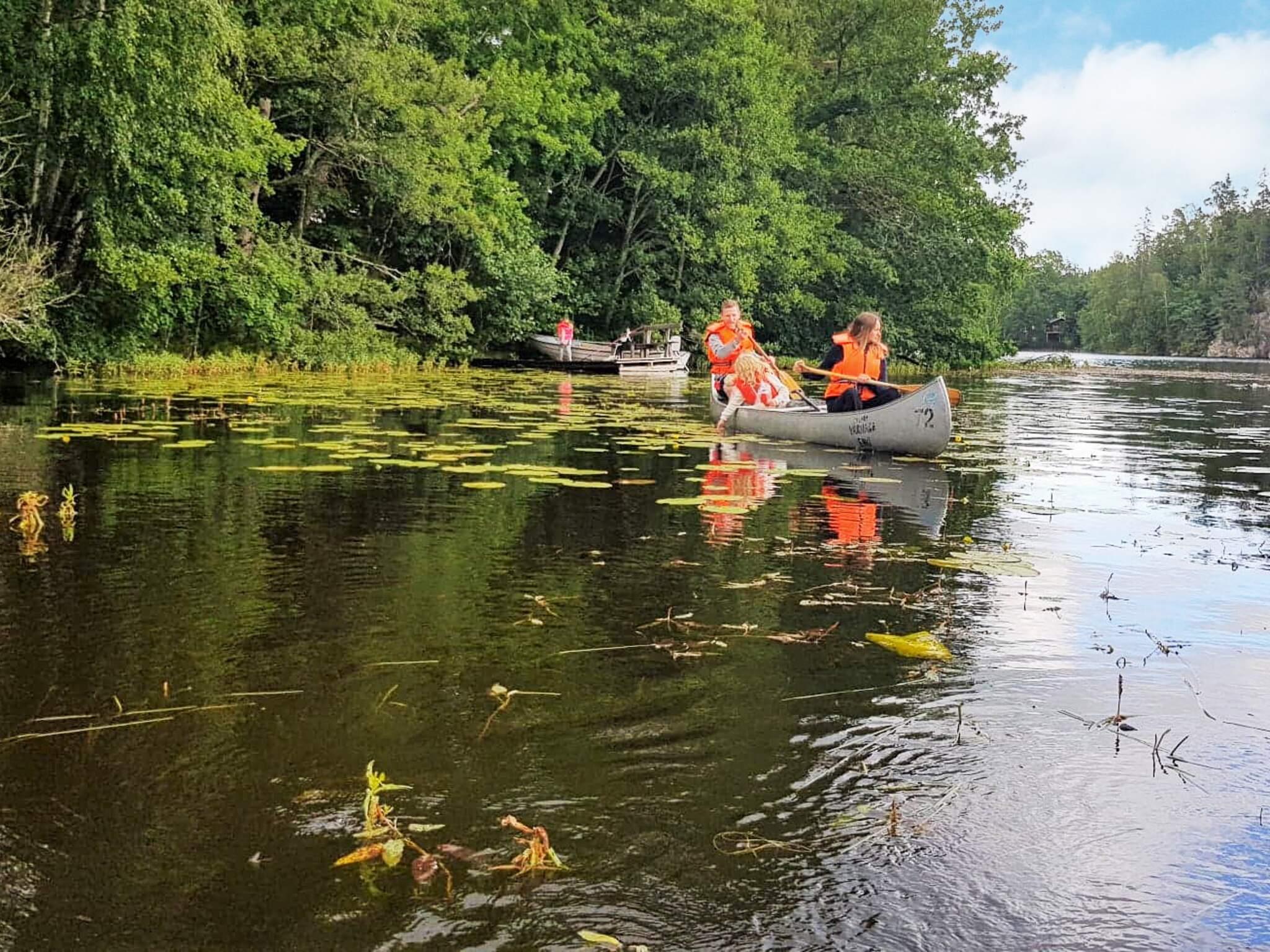 Här finns även en kiosk och lekplats. På den andra finns ett café, en volleybollplan och möjlighet att hyra kanot för att ta sig runt på sjön. Varför inte stanna på en ö och grilla? Från badsjön utgår även en kulturled med fascinerande natur och platser att besöka. Huset har ett sovrum i vardera ände av huset och de har båda dubbelsäng.