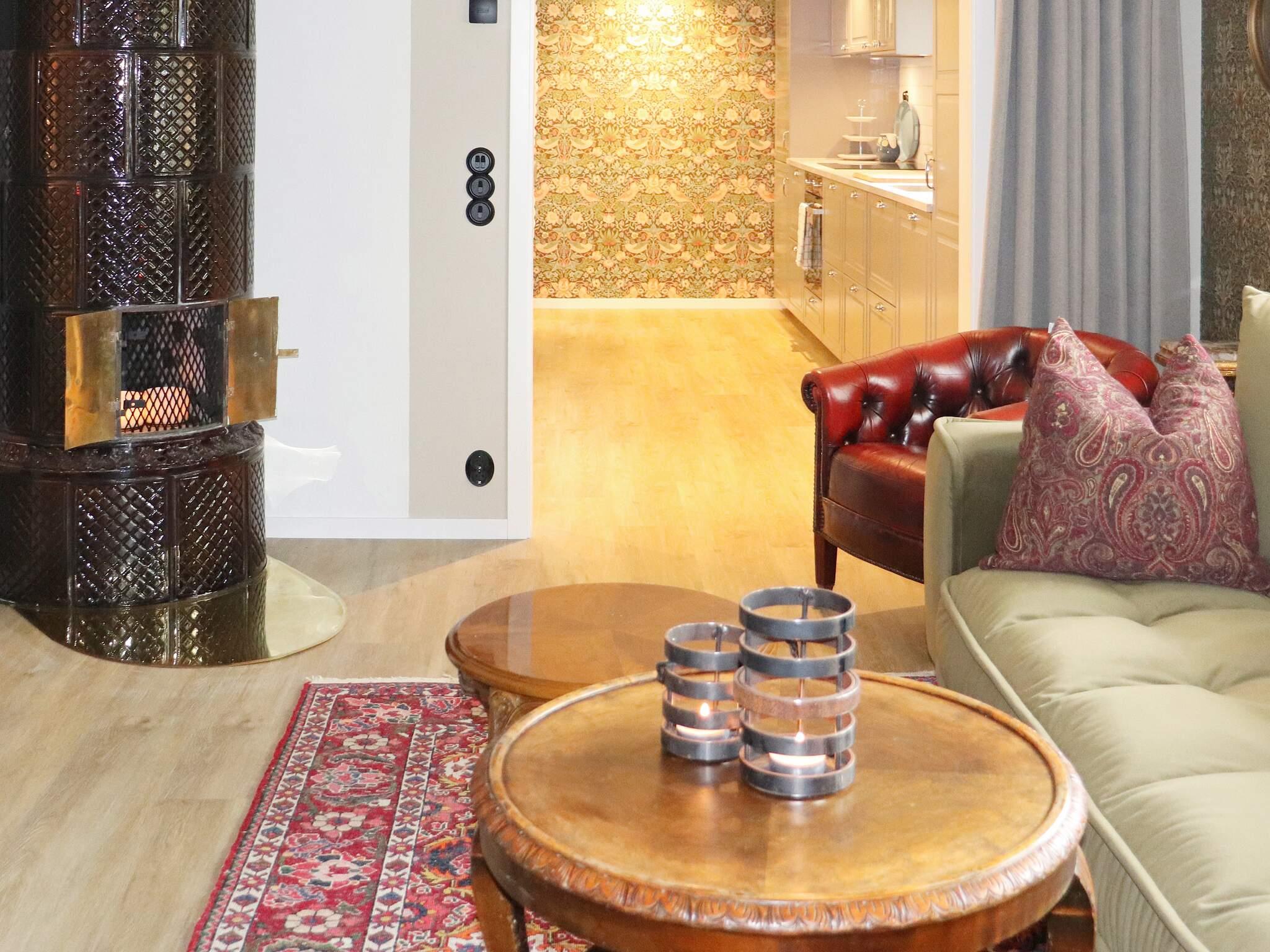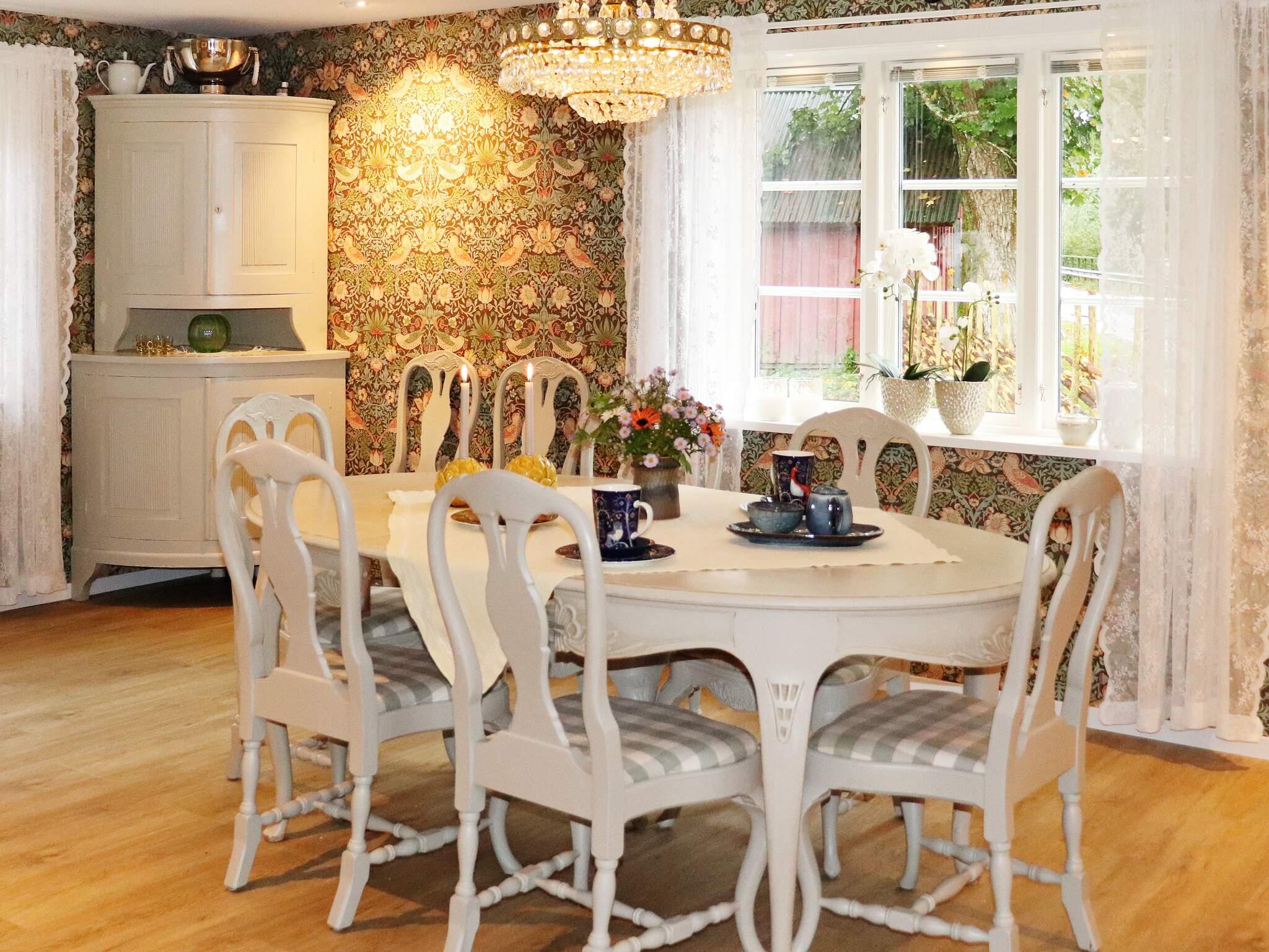 I huset finns ett stort, öppet och välutrustat kök med matplats. Den vackra gjutjärnsspisen är bara som utsmyckning. Det finns två sovrum, båda med en dubbelsäng (varav en är 140 cm bred). Vardagsrummet har en generös bäddsoffa och här finns en stor modern smart-TV. En vacker kakelugn med tända ljuslyktor ger en härlig stämning (eldningsförbud). Badrummet är rymligt och har dusch samt kombinerad tvättmaskin/torktumlare. Vid entrén finns en gästtoalett. I stugan finns bredband och gratis WiFi samt en Bluetooth-högtalare. Hela inredning är noga utvald för att bevara den unika torpmiljön men med absolut modern kvalitét.