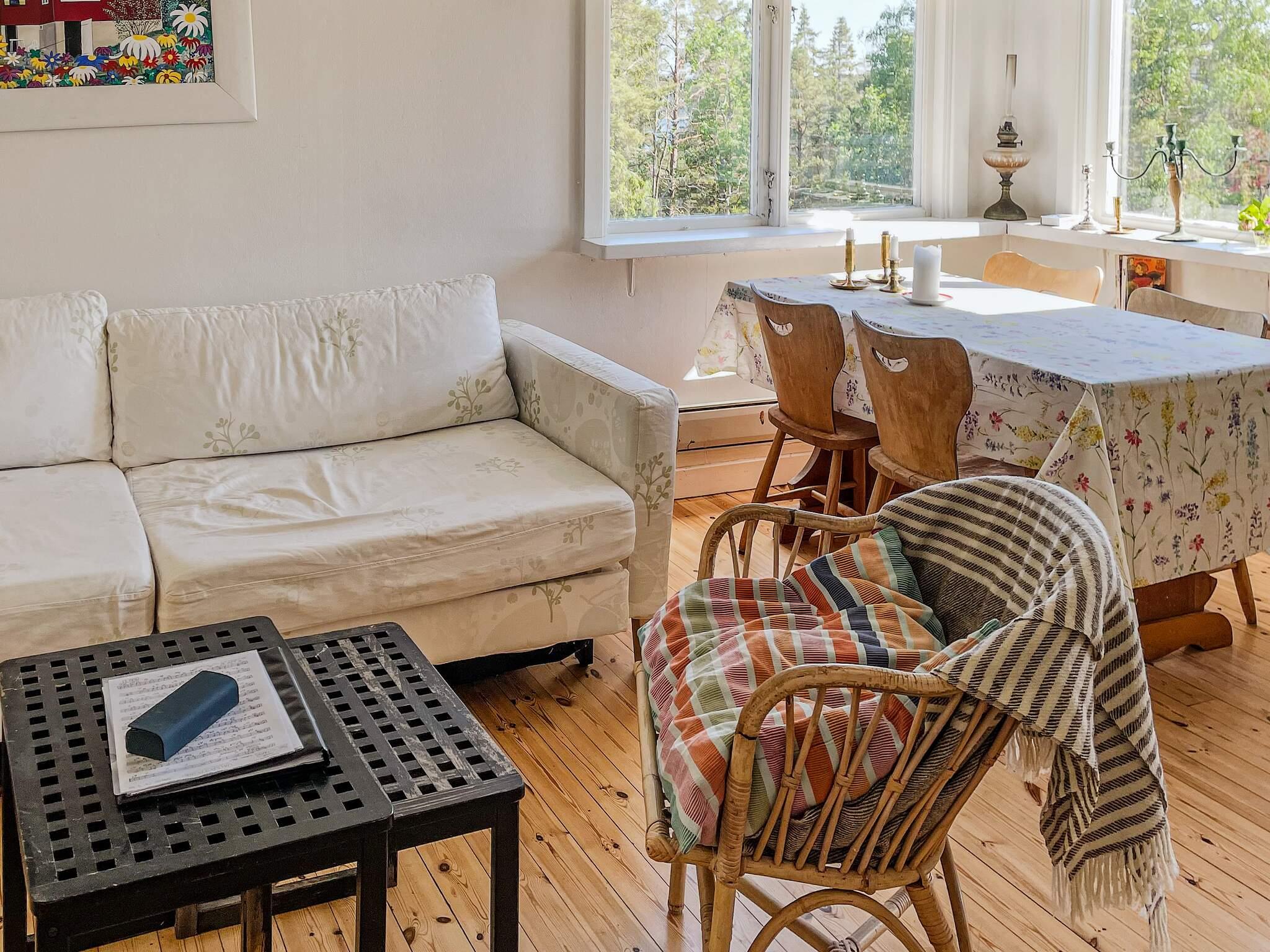 Huset är enkelt men har det man behöver för en lugn och mysig semester nära naturen.Det stora huset har ett sovrum med familjevåningssäng och en bäddsoffa för två i vardagsrummet. Dusch och bastu finns i källaren.